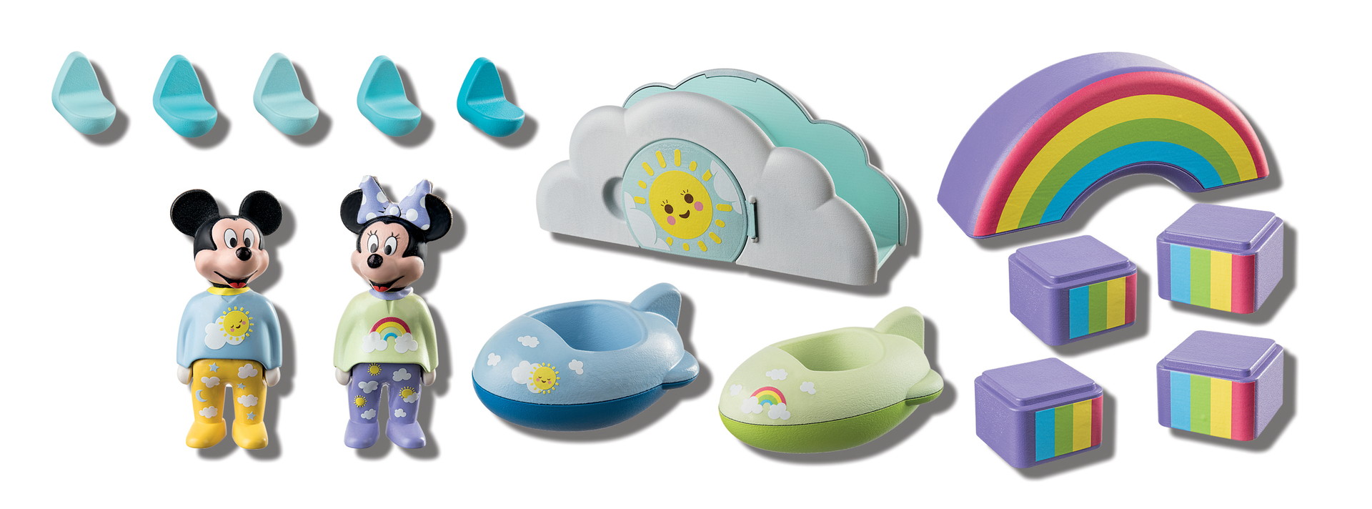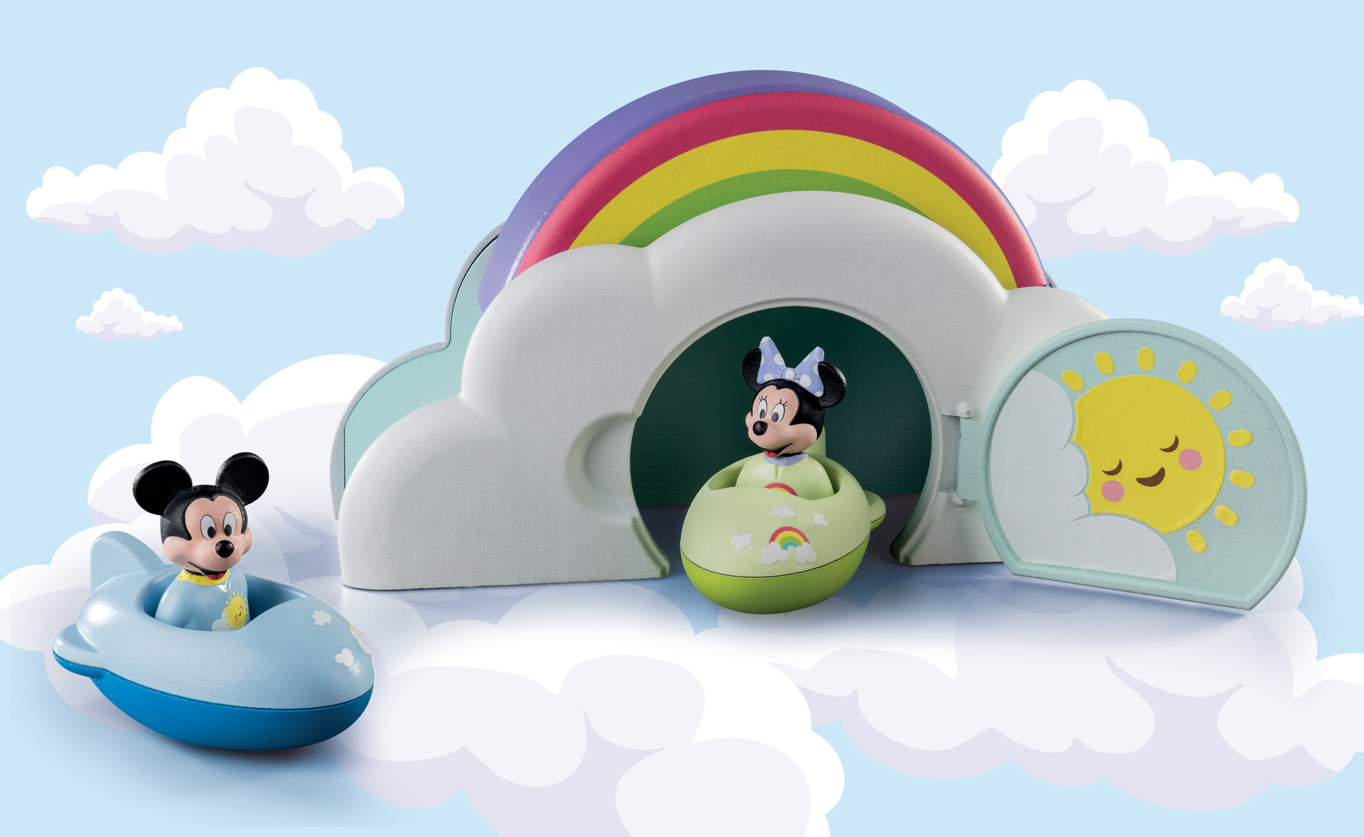 Contient les personnages de Mickey et Minnie. Sur le côté du nuage sont disposés cinq marches en forme de goutte pour y placer les personnages L'arc en ciel peut se diviser en plusieurs parties distinctes et peut former une balançoire Les avions sont adaptés à la structure du nuage et peuvent être glissées dessus