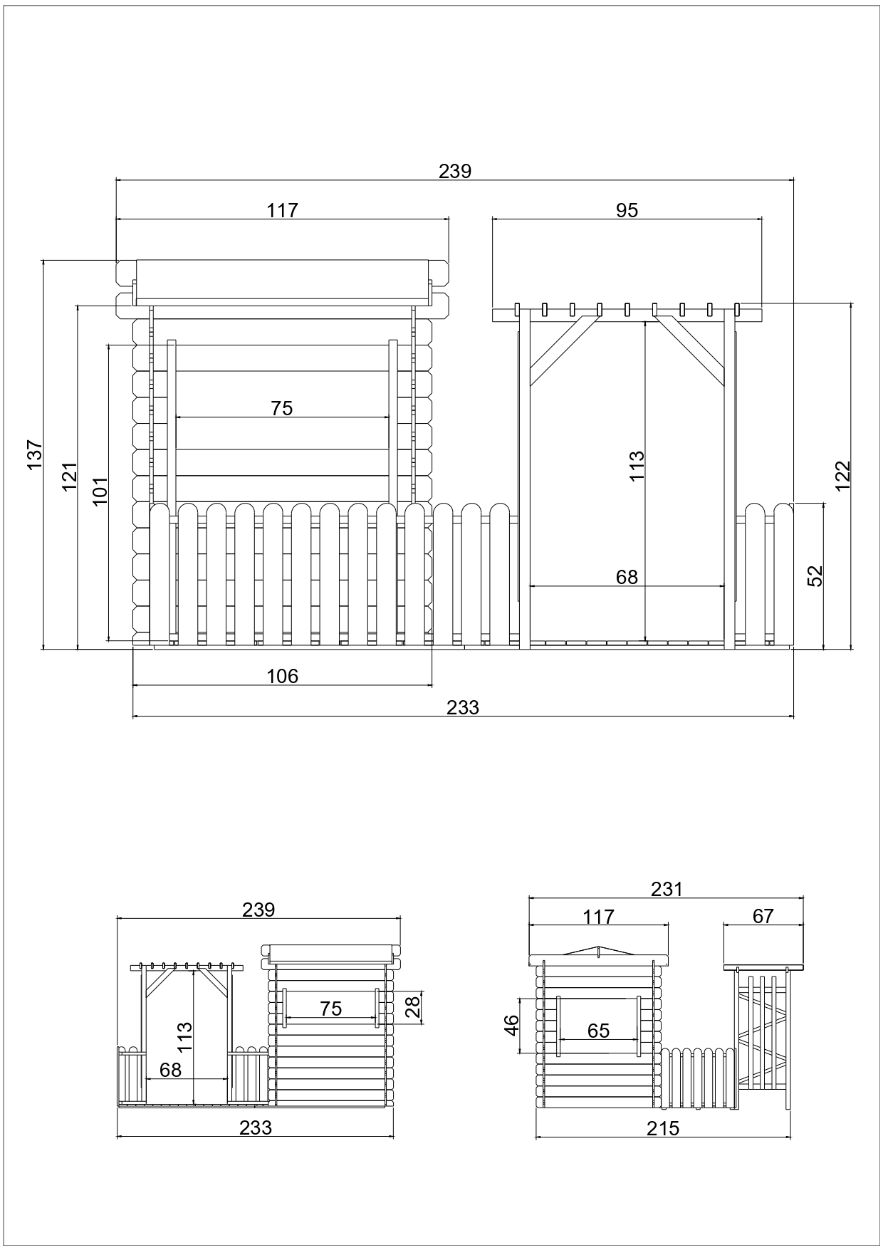 Dimensions extérieures avec débord de toit: 112 x 146 cm