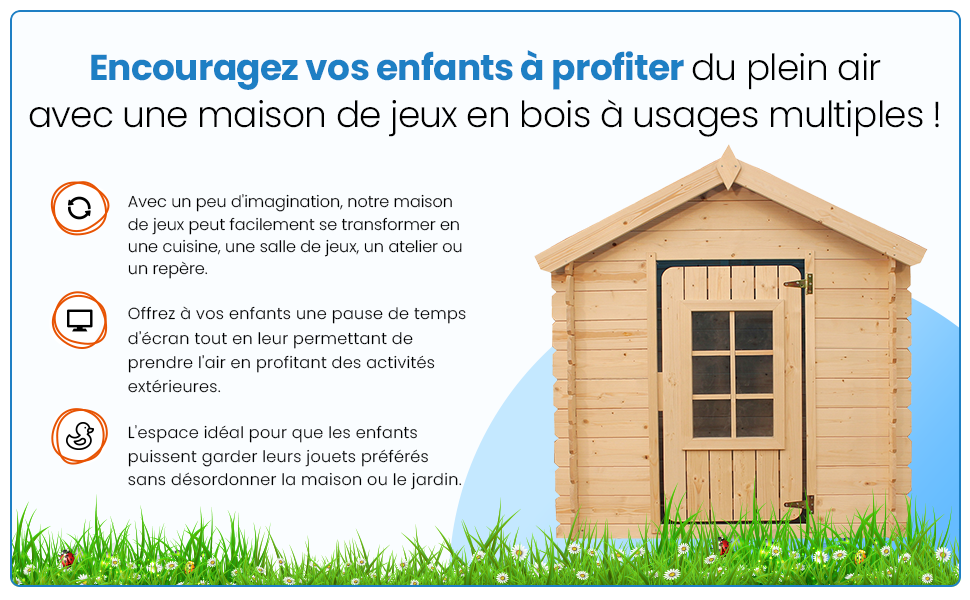 | Libellé | Maison en bois pour enfants - 0.9 m2 - 111 x 113 cm - Toit rouge - SANS PLANCHER - Timbela M570R-1 |