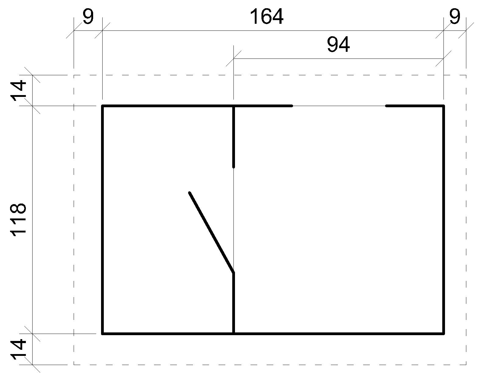 Dimensions extérieures avec débord de toit : 146 x 182 x H205 cm