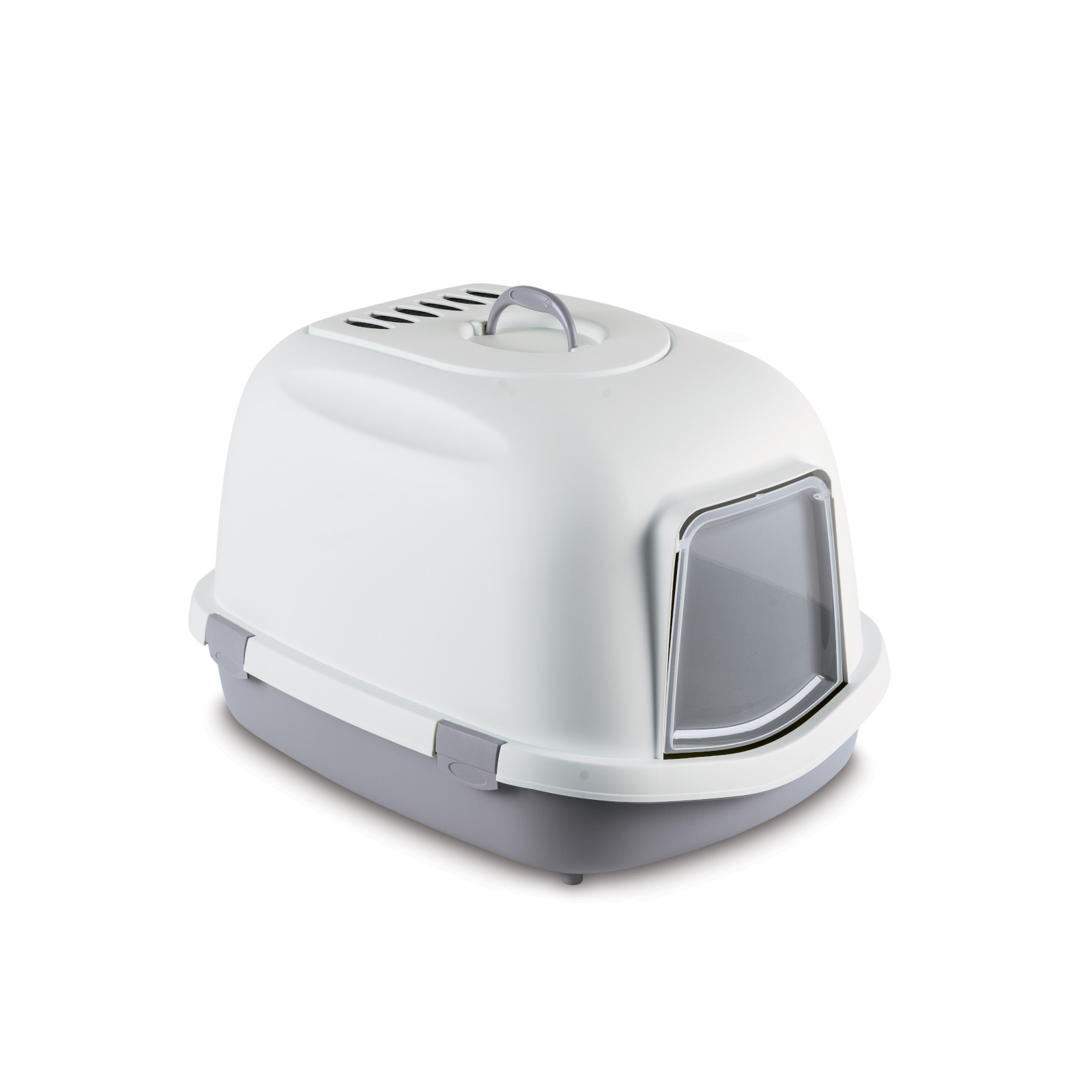 Maison de toilette Super Queen maxi taille : Idéale pour les chats de grandes races et les multi-possesseurs. Cette maison de toilette permet au chat de faire ses besoins en toute intimité. Le filtre à charbon intégré au toit permet de neutraliser les mauvaises odeurs. La poignée facilite le transport ou le déplacement de la maison. Fabriquée en Italie. Coloris : gris pierre