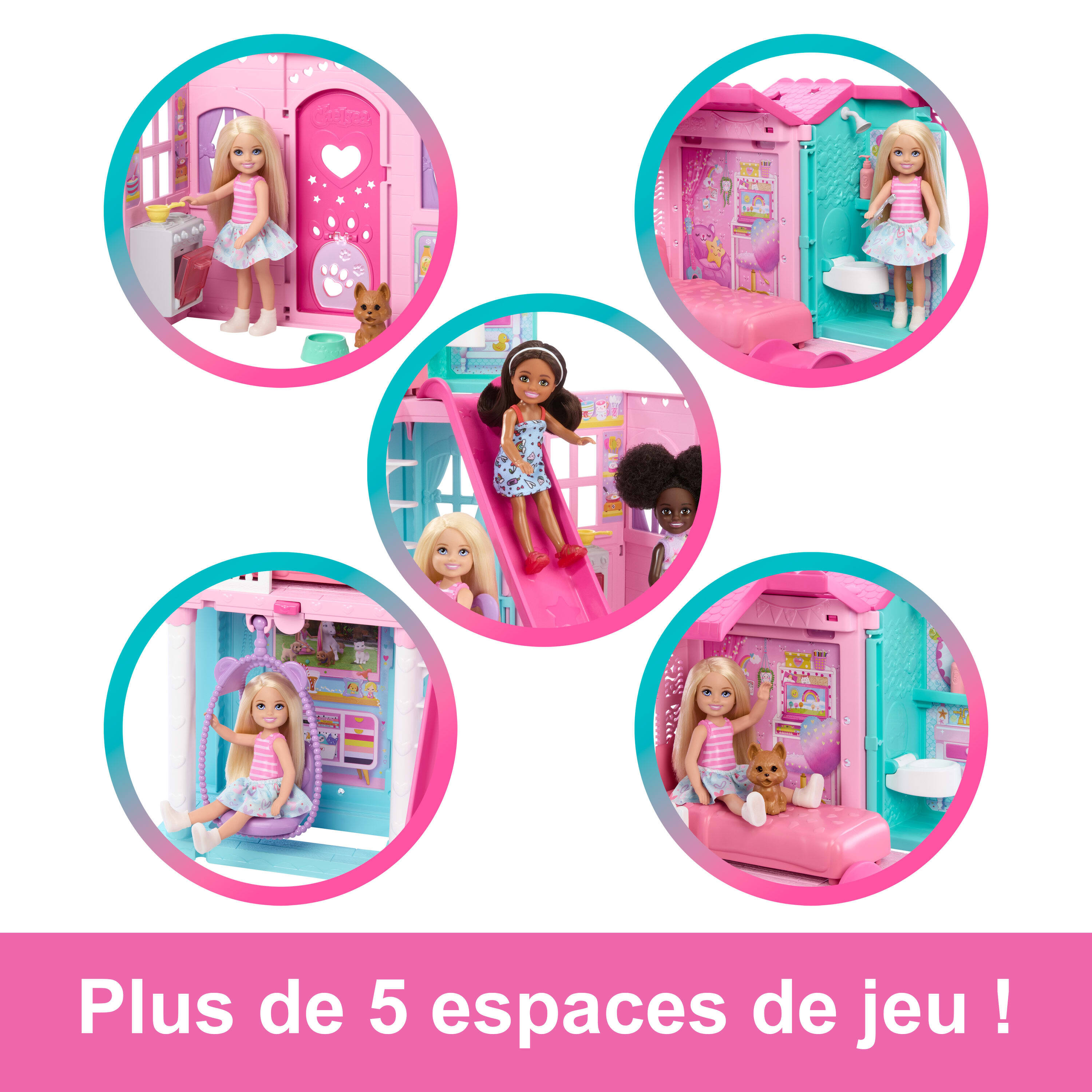 Cette maison s’adapte à Chelsea et son chiot ! Elle s’ouvre sur 5 espaces de jeu avec 15 accessoires et révèle une chambre à coucher à l’étage.