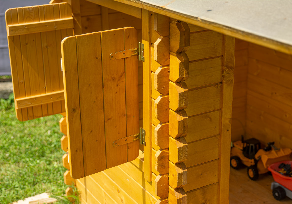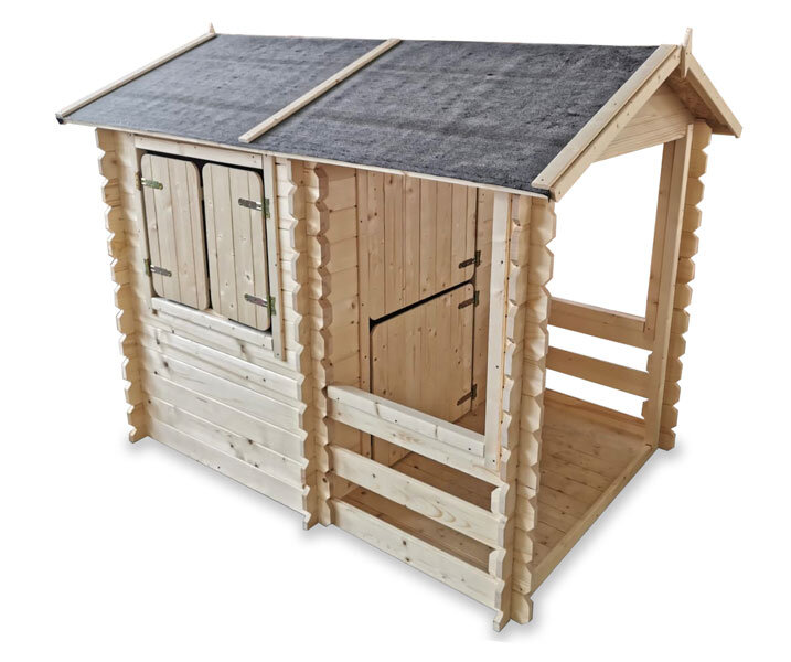 La maisonnette en bois Tao dispose de 2 espaces de jeux couverts dont une petite terrasse couverte qui permet de jouer à l'abri du soleil et de la pluie. Avec son plancher bois, cette jolie cabane a tous les atouts d'une grande.