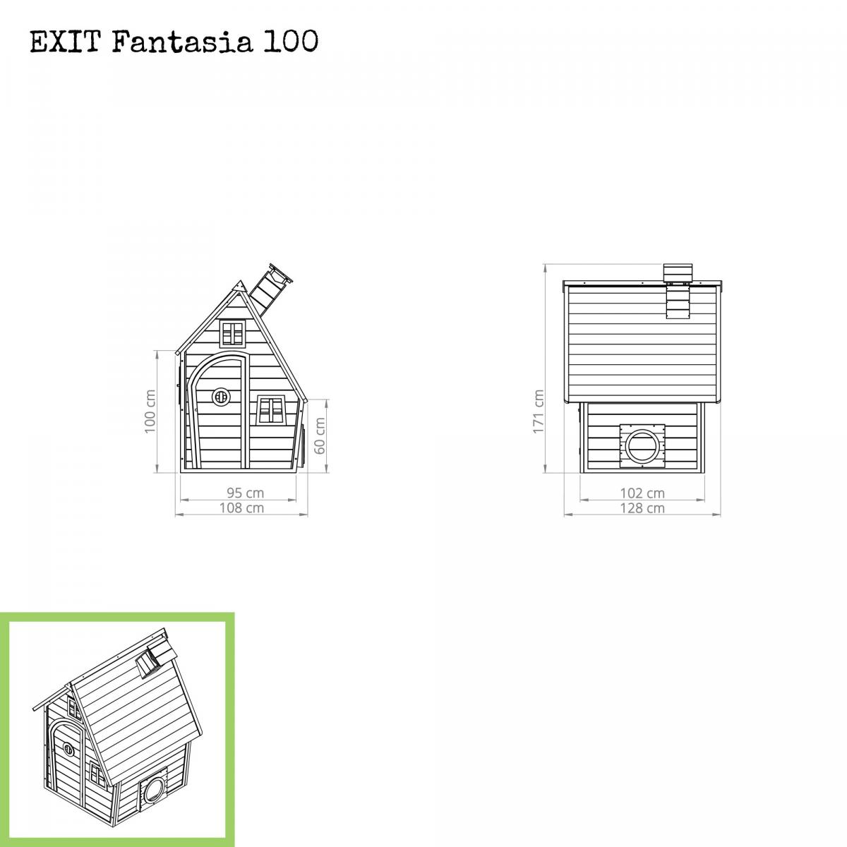 Chaque enfant se sentira chez soi dans la maisonnette en bois EXIT Fantasia 100 de couleur naturelle. Tu deviens joyeux rien qu'en regardant les maisonnettes. Cette maisonnette originale EXIT Fantasia se pose au sol et prend donc peu de place. La maisonnette en bois est facile à assembler grâce aux panneaux prémontés. Les détails, tels que la cheminée, les fenêtres aux formes ludiques et la balustrade inclinée, complètent l'aspect de cette maisonnette en bois EXIT Fantasia 100 ! Dimensions : 128 x 108 x 171 cm