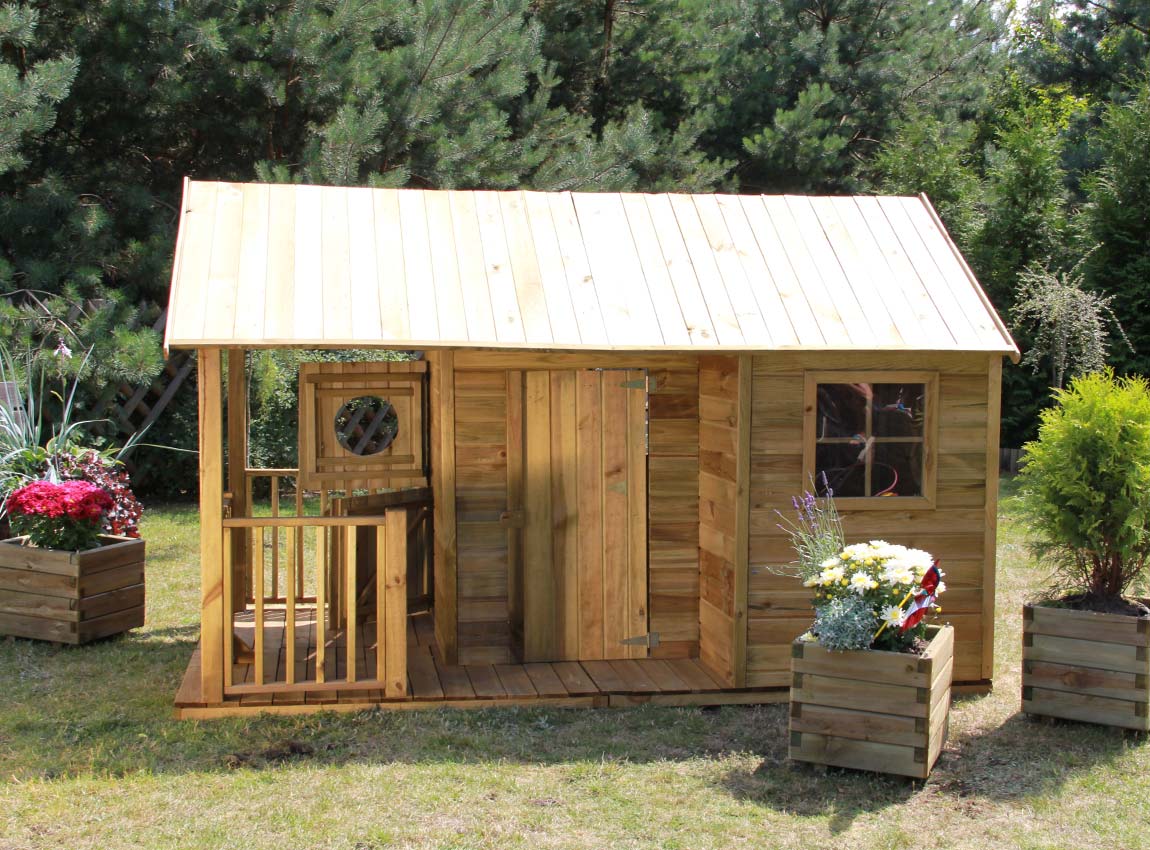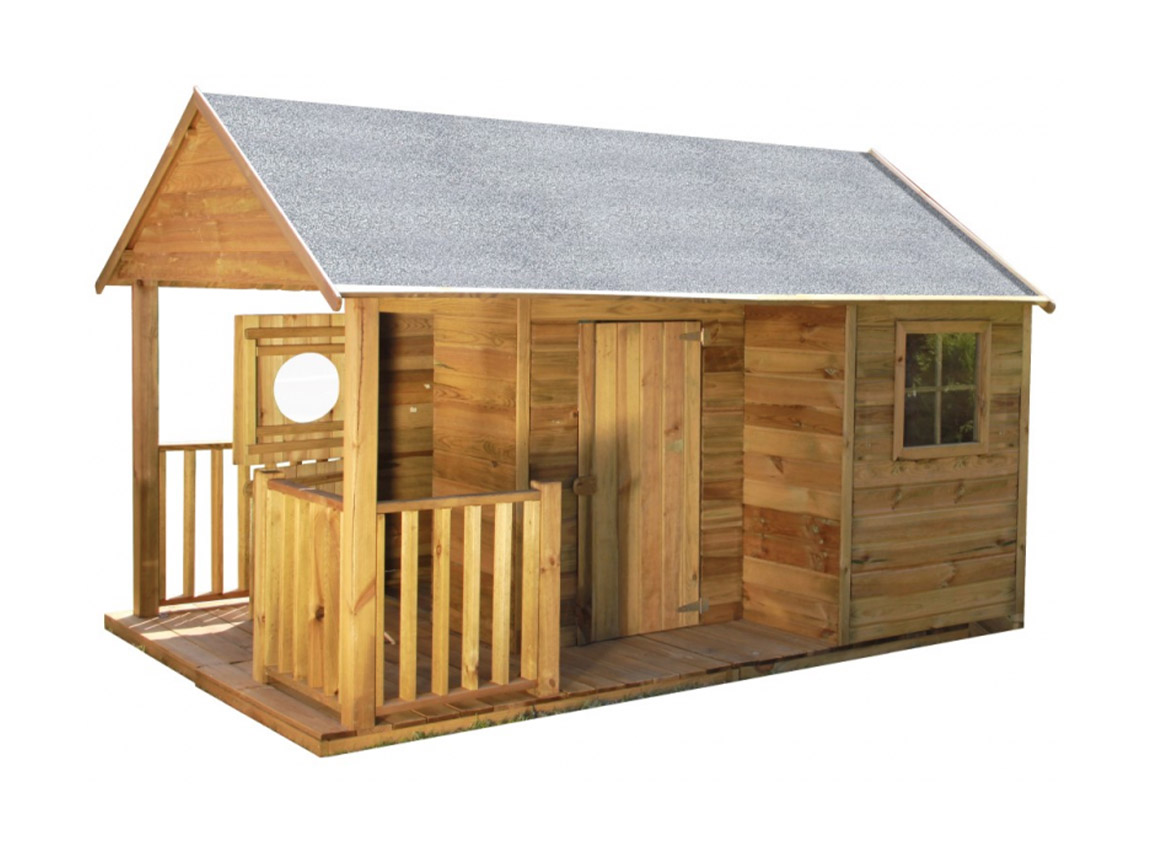 Libellé Maisonnette en Bois traité OOGarden INES - Avec double entrée et terrasse couverte