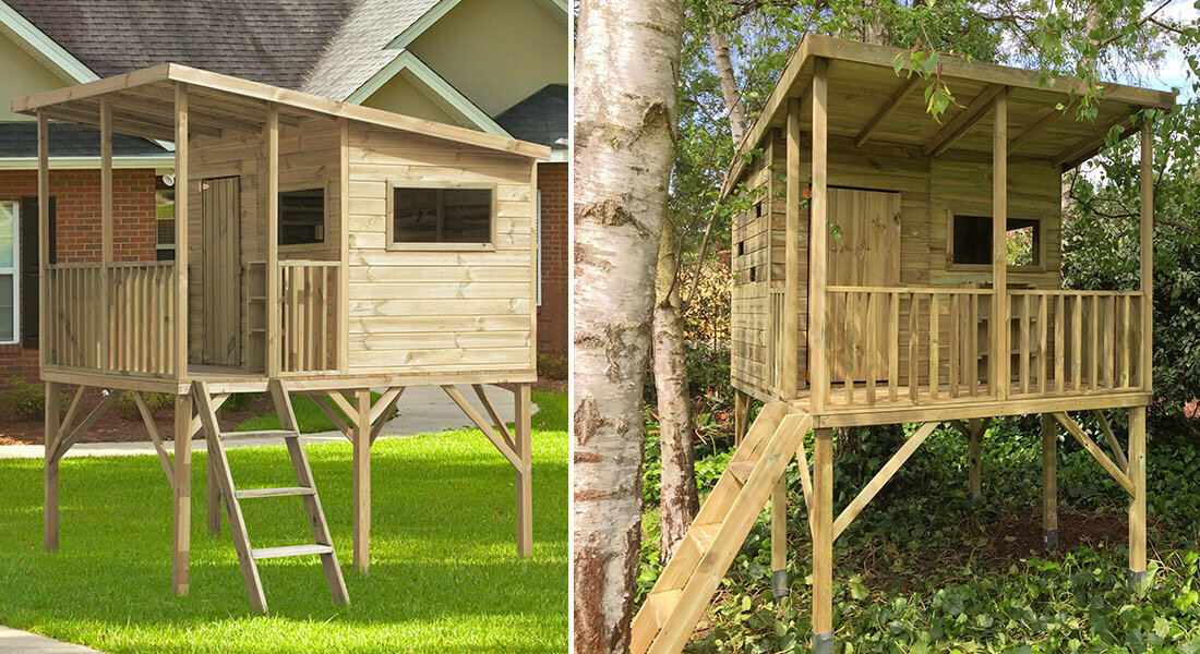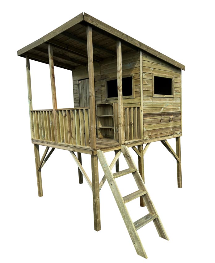 Maisonnette en Bois traité OOGarden ROBINSON - Sur pilotis avec terrasse couverte