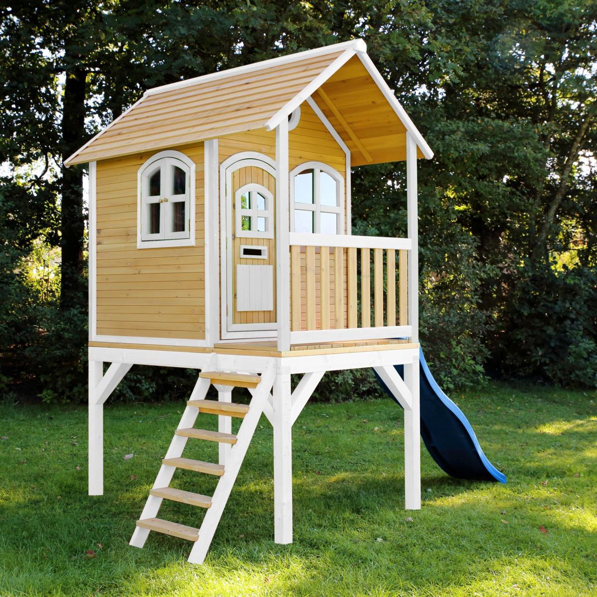 Maisonnette Sophie marron-blanc toboggan bleu