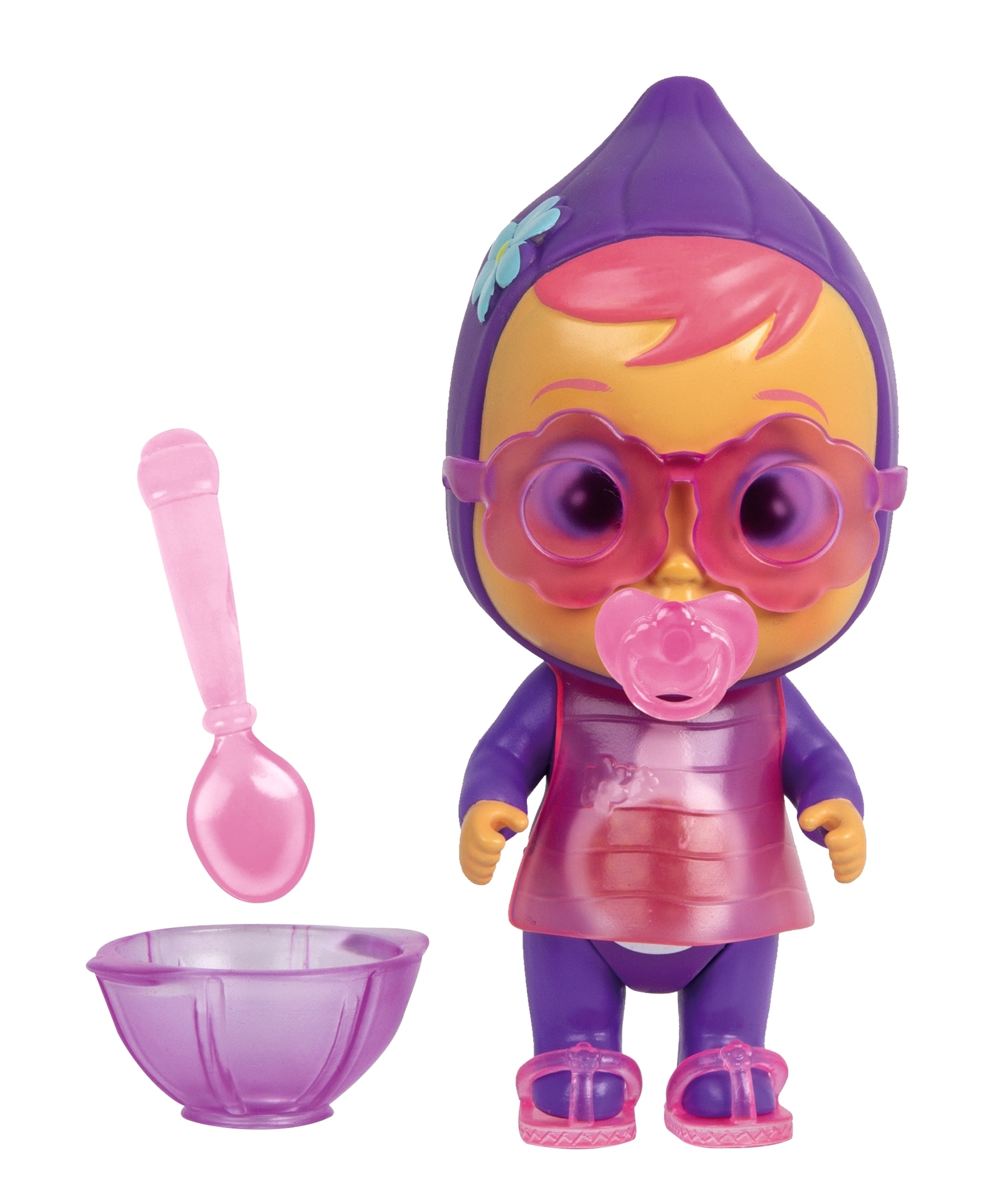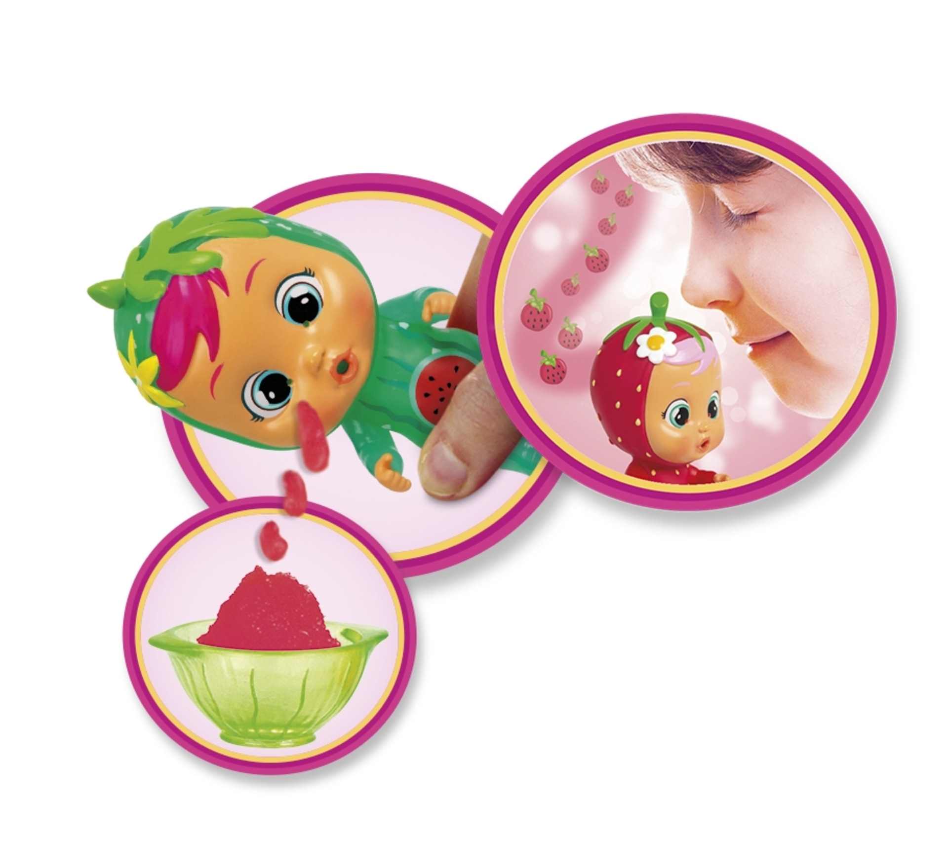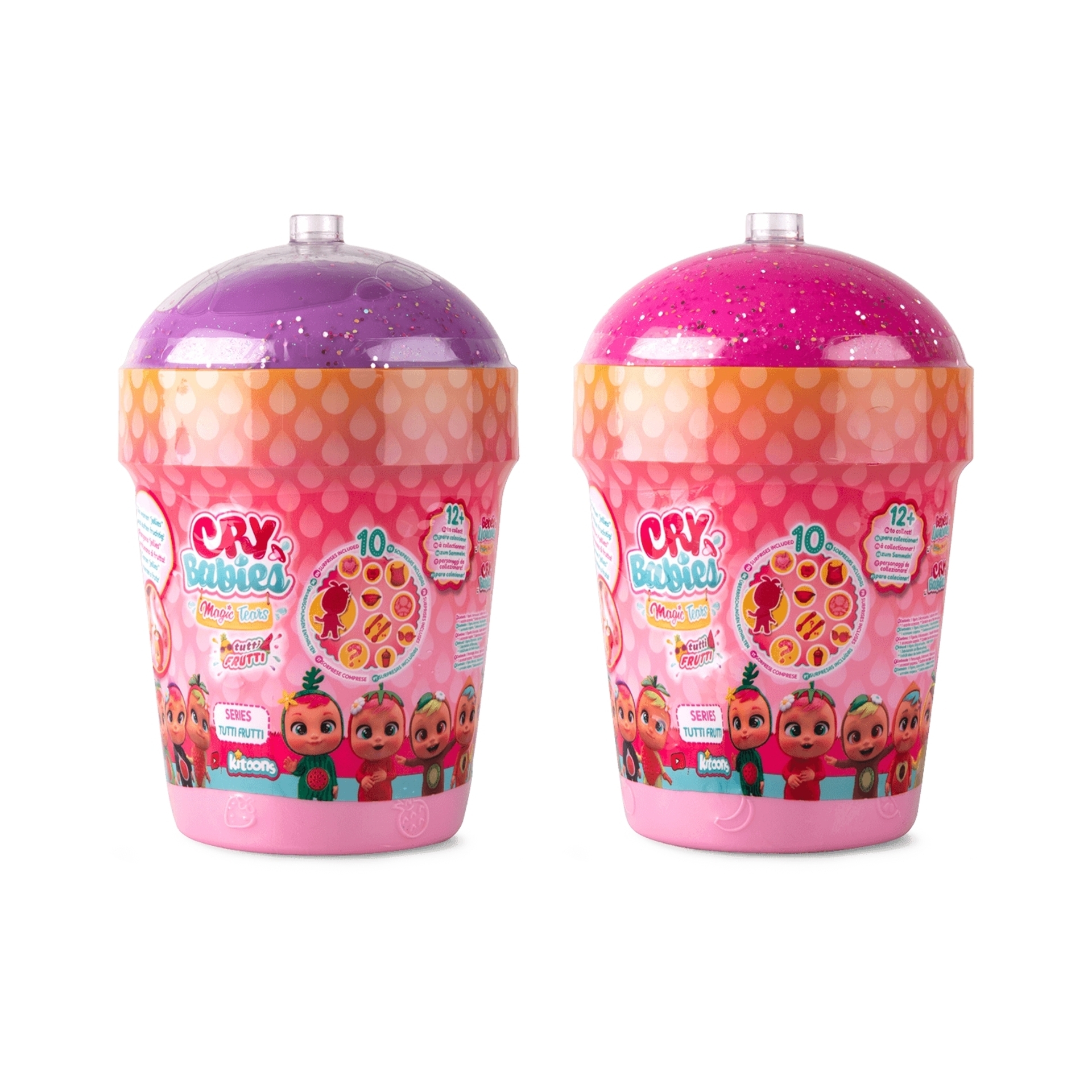 | Plus produit | Découvre quel personnage se cache à l\'intérieur de ton smoothie! Donne à boire à ton Cry Babies Magic Tears, appuie sur son ventre et il pleurera de vraies larmes en gelée au parfum fruité! Il y a 6 couleurs de gelée. 12 Cry Babies Magic Tears Tutti Frutti à collectionner. Inclus 9 accessoires. |