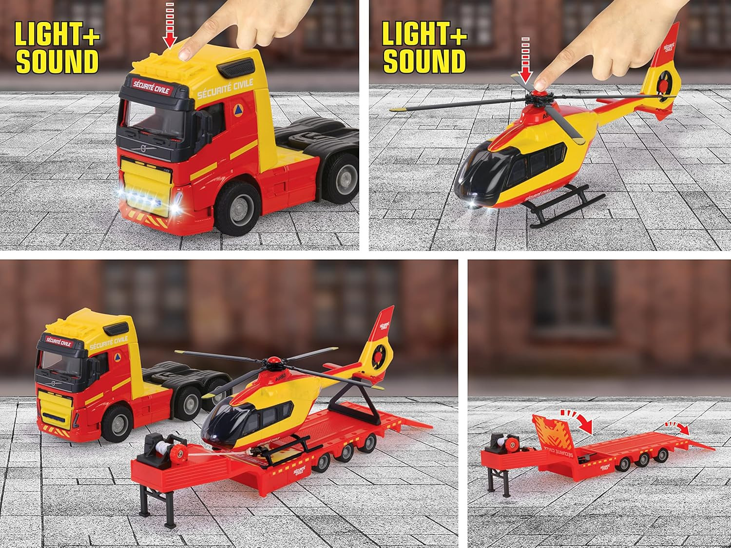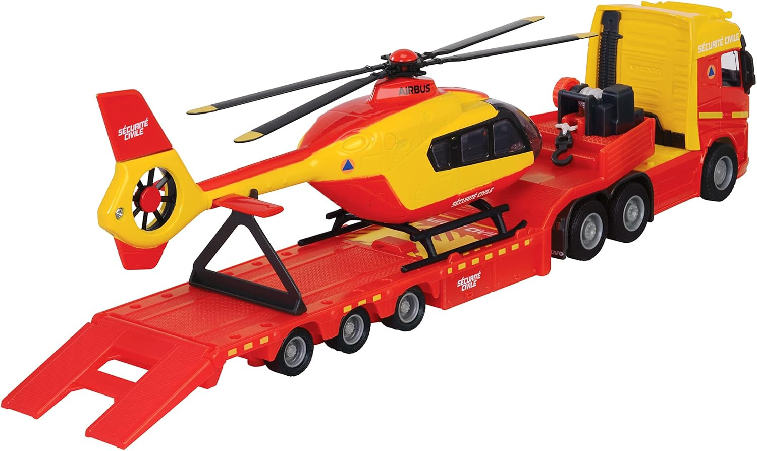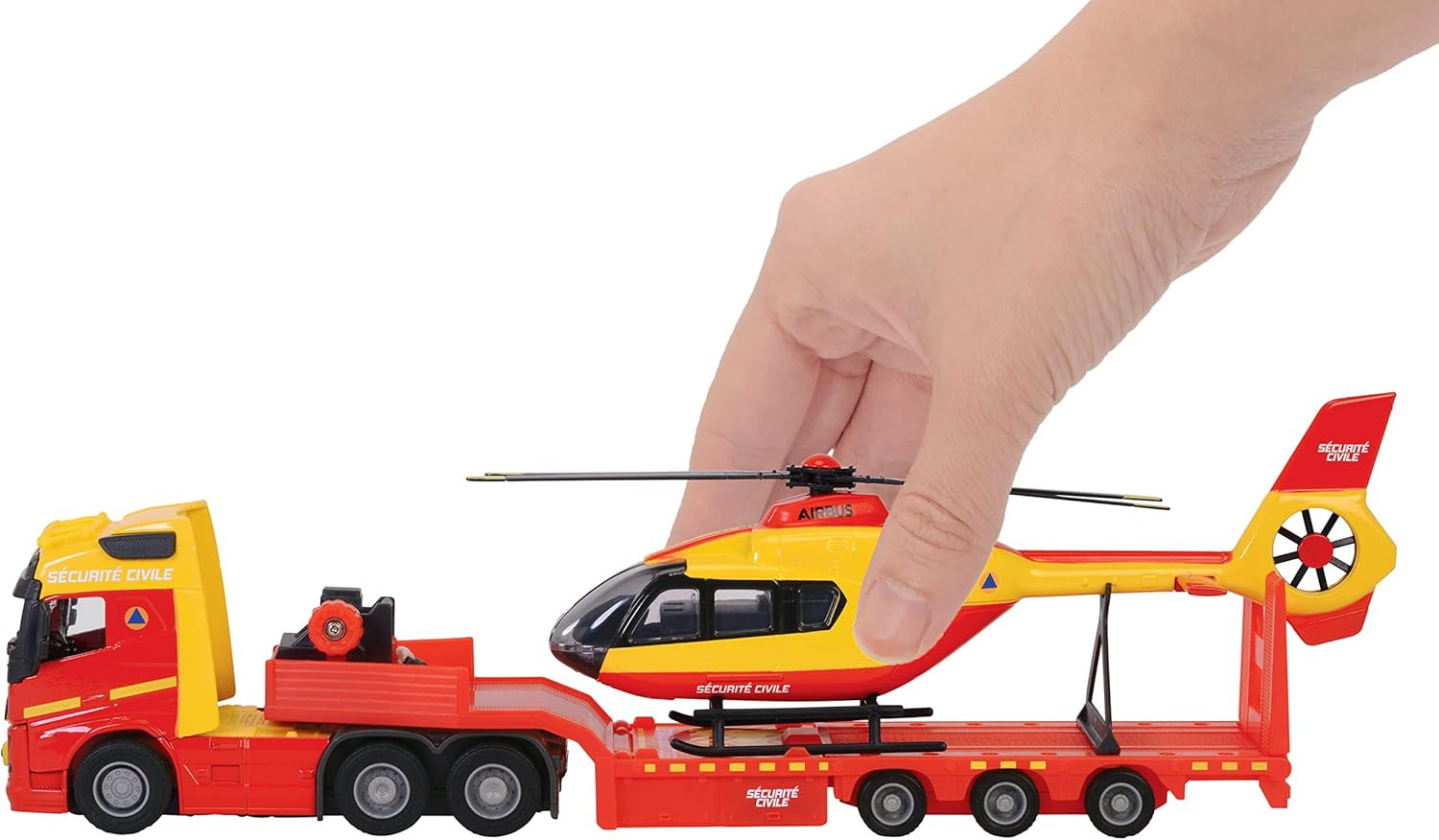 Véhicules de la Sécurité Civile camion transporter + hélicoptère, reproductions à l'échelle 1/43 ème (35 cm).
