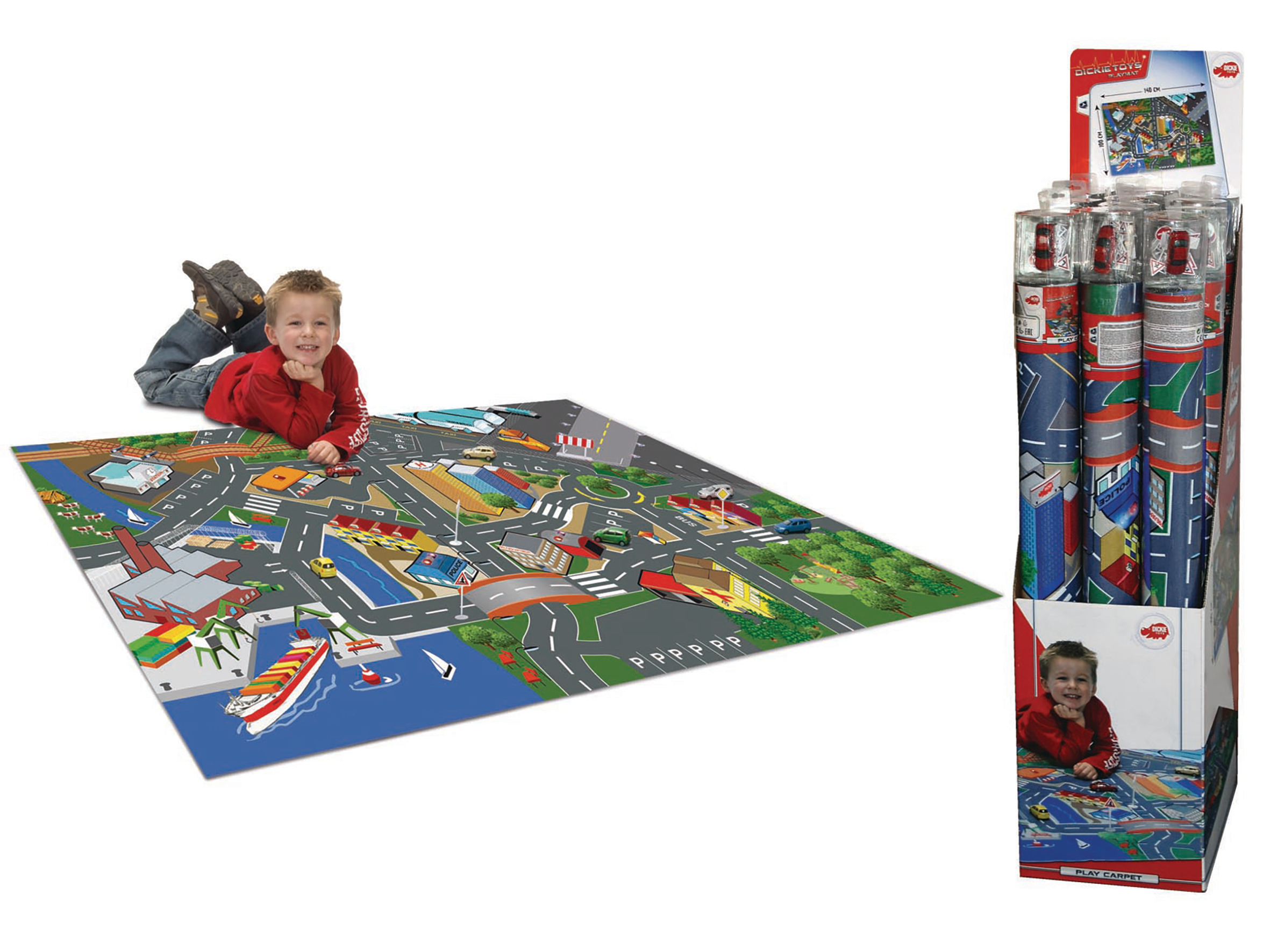 Tapis de jeu mesurant 100 x 140cm est le plus grand de la gamme de tapis Majorette. Livré en présentoir dans un packaging sous forme de tube. Le pack inclus : - 1 voiture majorette 1/64ème - Des panneaux signalétiques Livré en présentoir de 12 tapis. A partir de 3 ans.