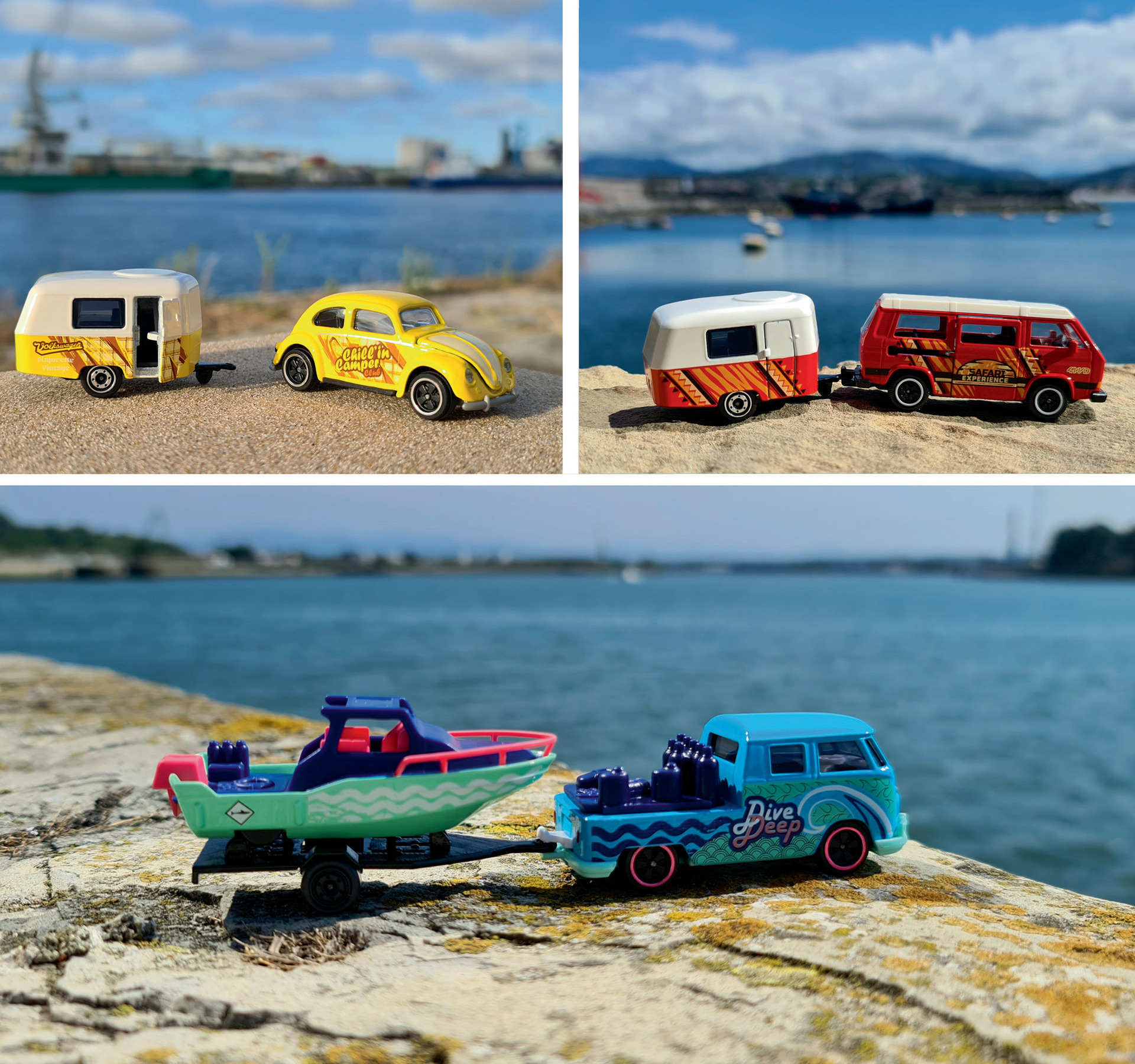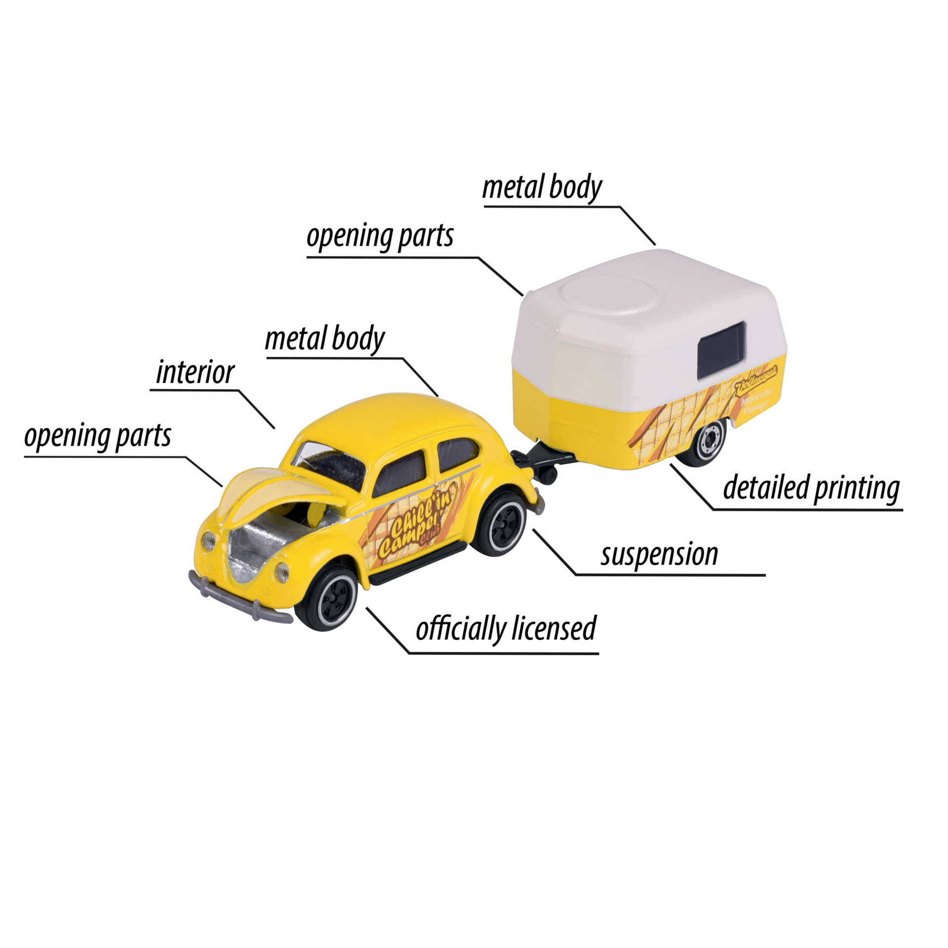 | Plus produit | Collection Vintage Majorette. Assortiment de 3 trailers (véhicule + remorque) en métal échelle 1/64ème. Parties ouvrantes, suspensions, reproduction des grands modèles Volkswagen. |