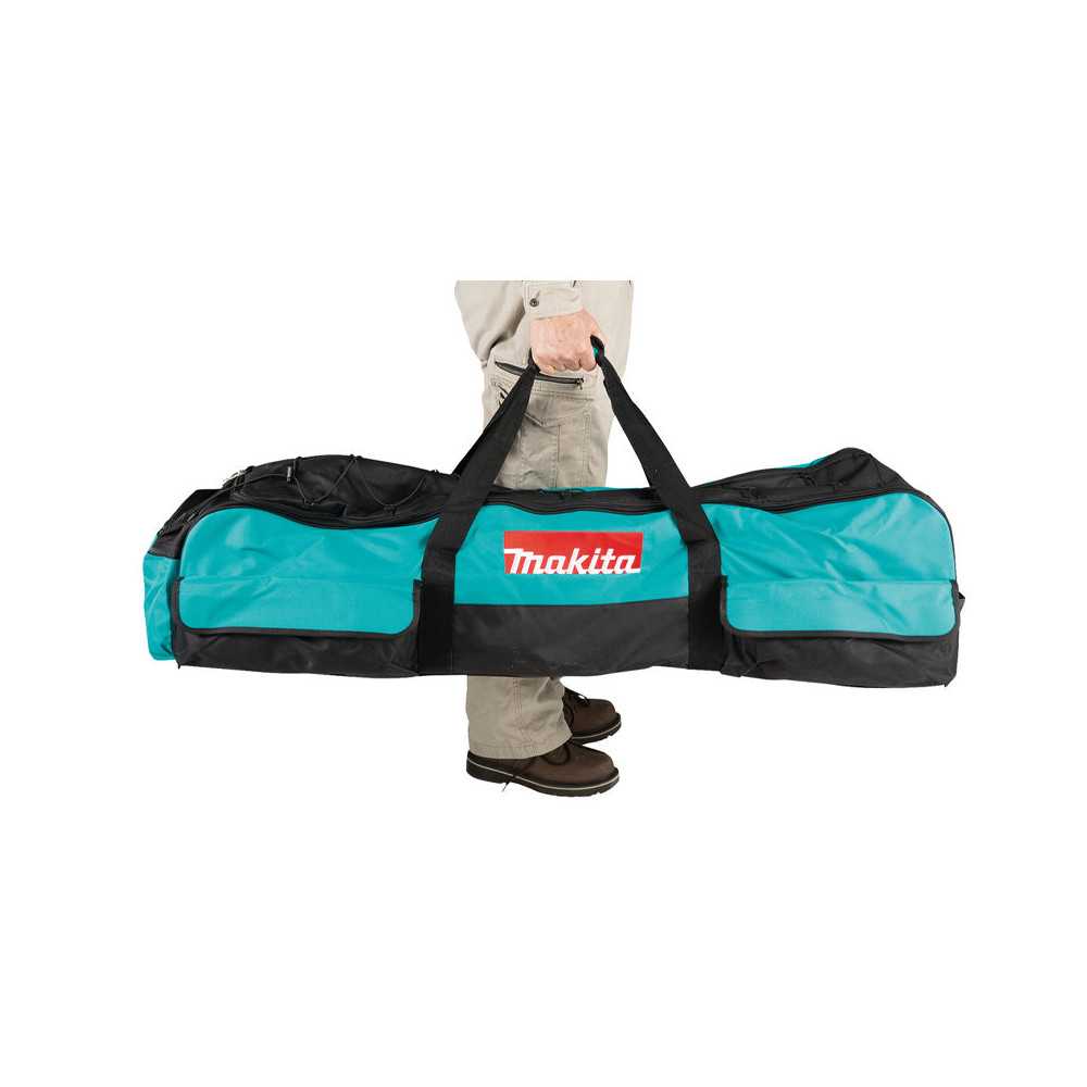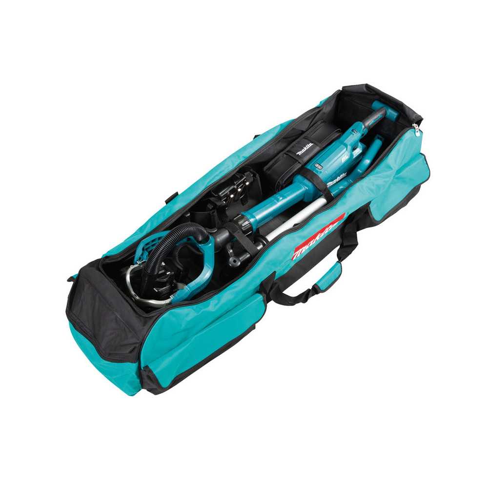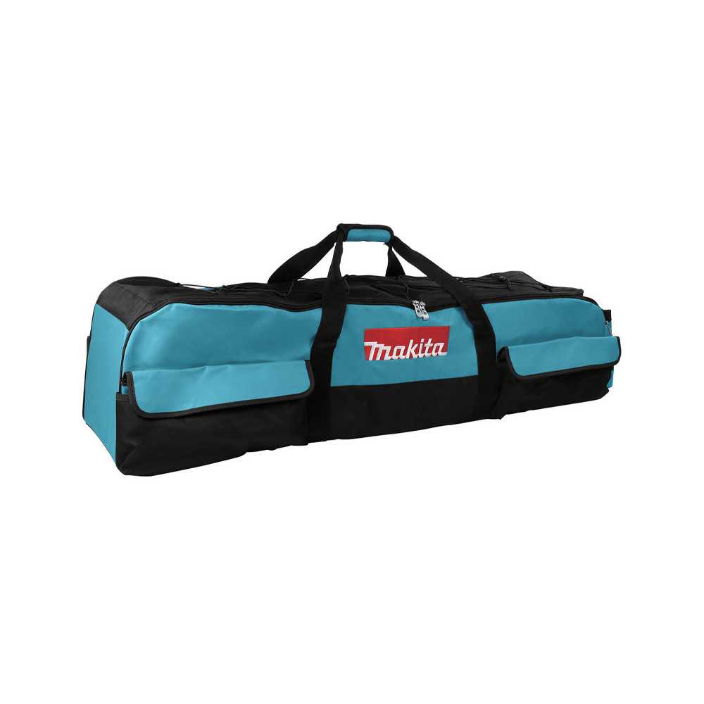 Sac de rangement Makita 195638-5 conçu pour débroussailleuses et accessoires compatibles (DUX60, DUX18, DSL800, UX01G). Dimensions 1200 x 330 x 300 mm pour accueillir un outil long et plusieurs accessoires.