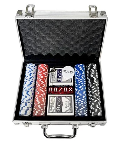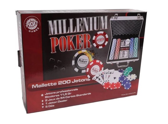 Mallette 200 jetons numerotes poker cartes et dés.