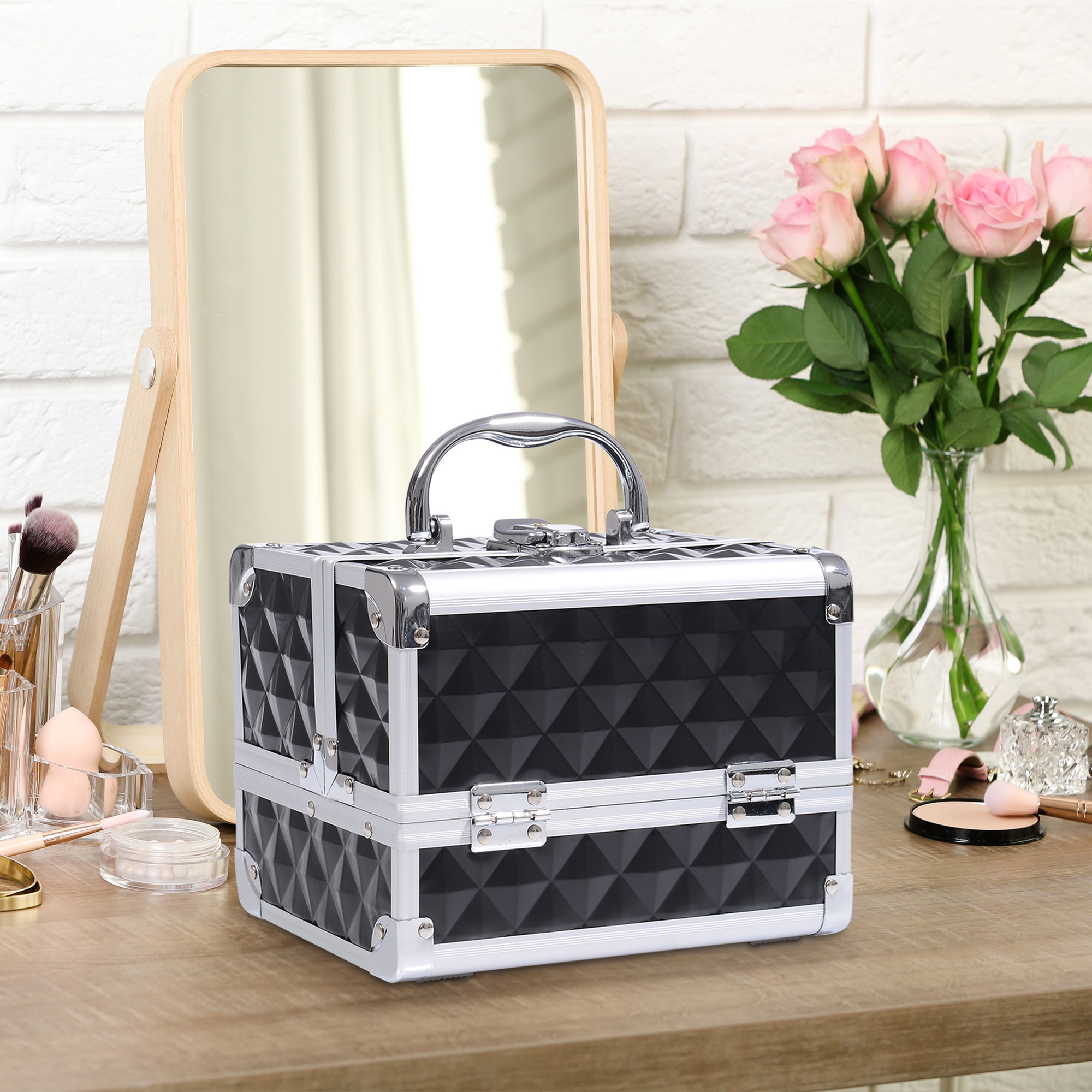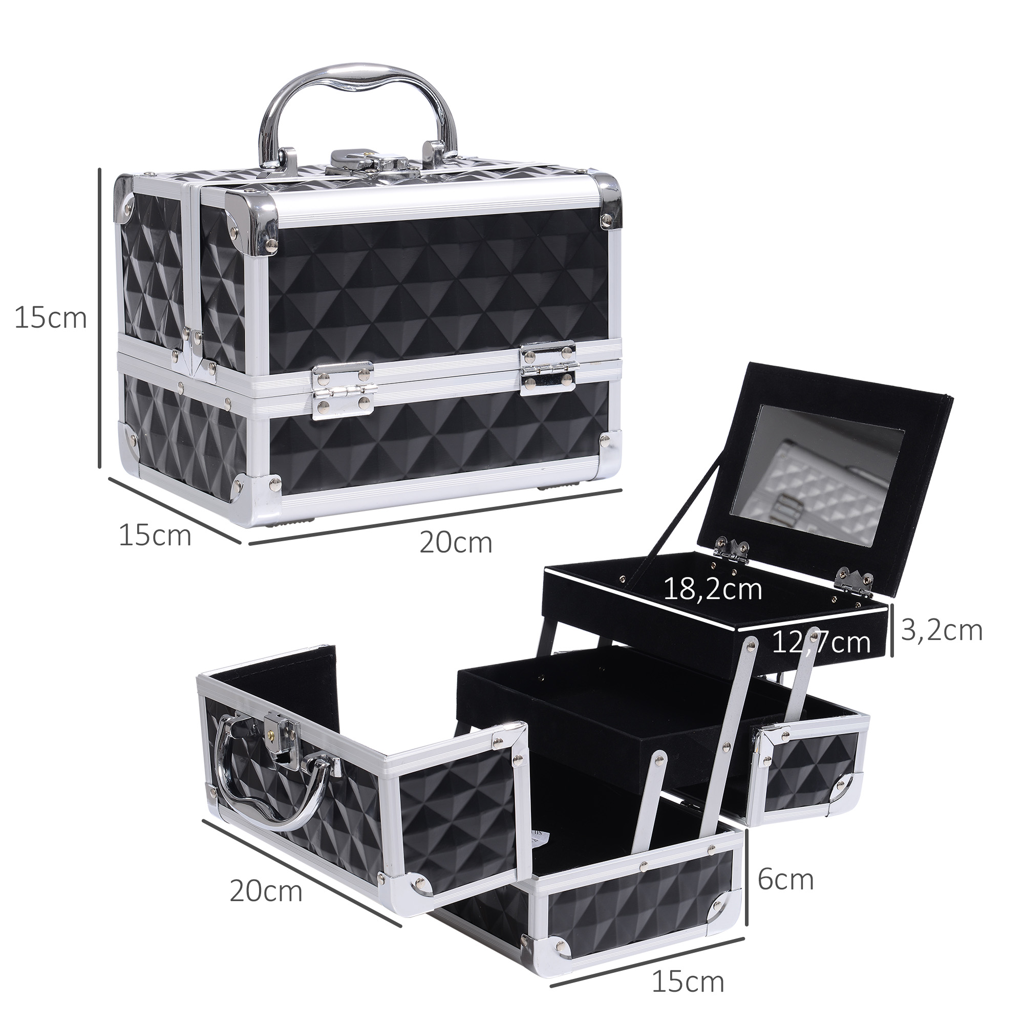 Cette malette de maquillage est idéale pour ranger et organiser vos accessoires de maquillage et vos bijoux. Avec un miroir pour une visualisation pratique, 3 plateaux à plusieurs niveaux ainsi qu'un grand espace inférieur abritent et protègent votre maquillage. Vos bijoux et autres objets de valeur seront bien sécurisés dans cette mallette équipée d'une serrure. Le modèle est conçu pour tous professionnels et inconditionnels de produits et accessoires de beauté.
