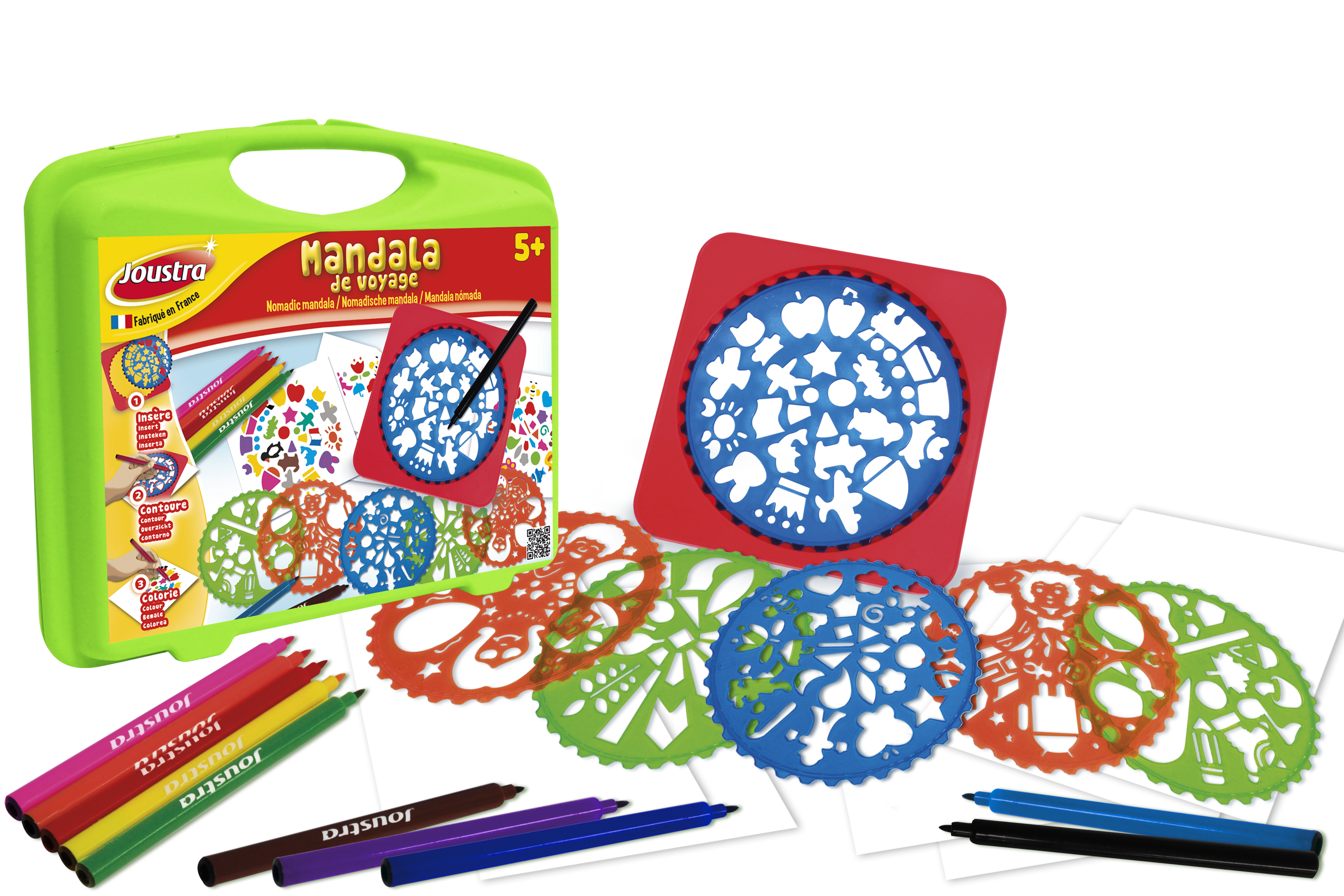 Une malette composée de 6 mandalas interchangeables pour réaliser plus de 200 dessins différents !