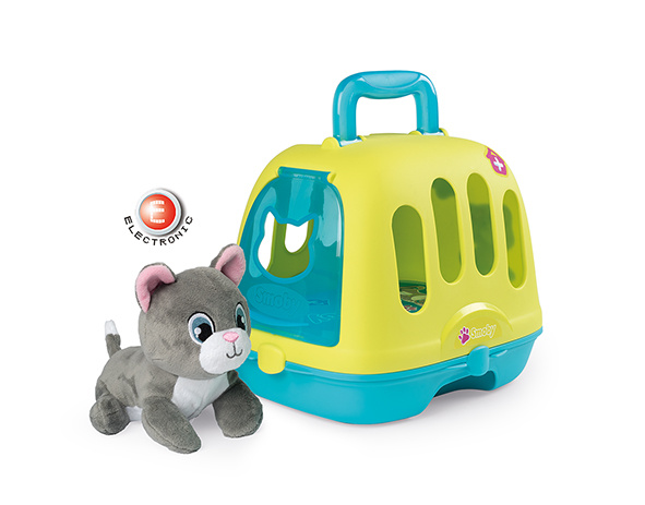 | Plus produit | Produit 2 en 1 : Cage de transport et mallette de vétérinaire. 1 peluche chaton avec effets sonores incluse. Nombreux accessoires : gamelle, croquettes, stéthoscope, seringue |