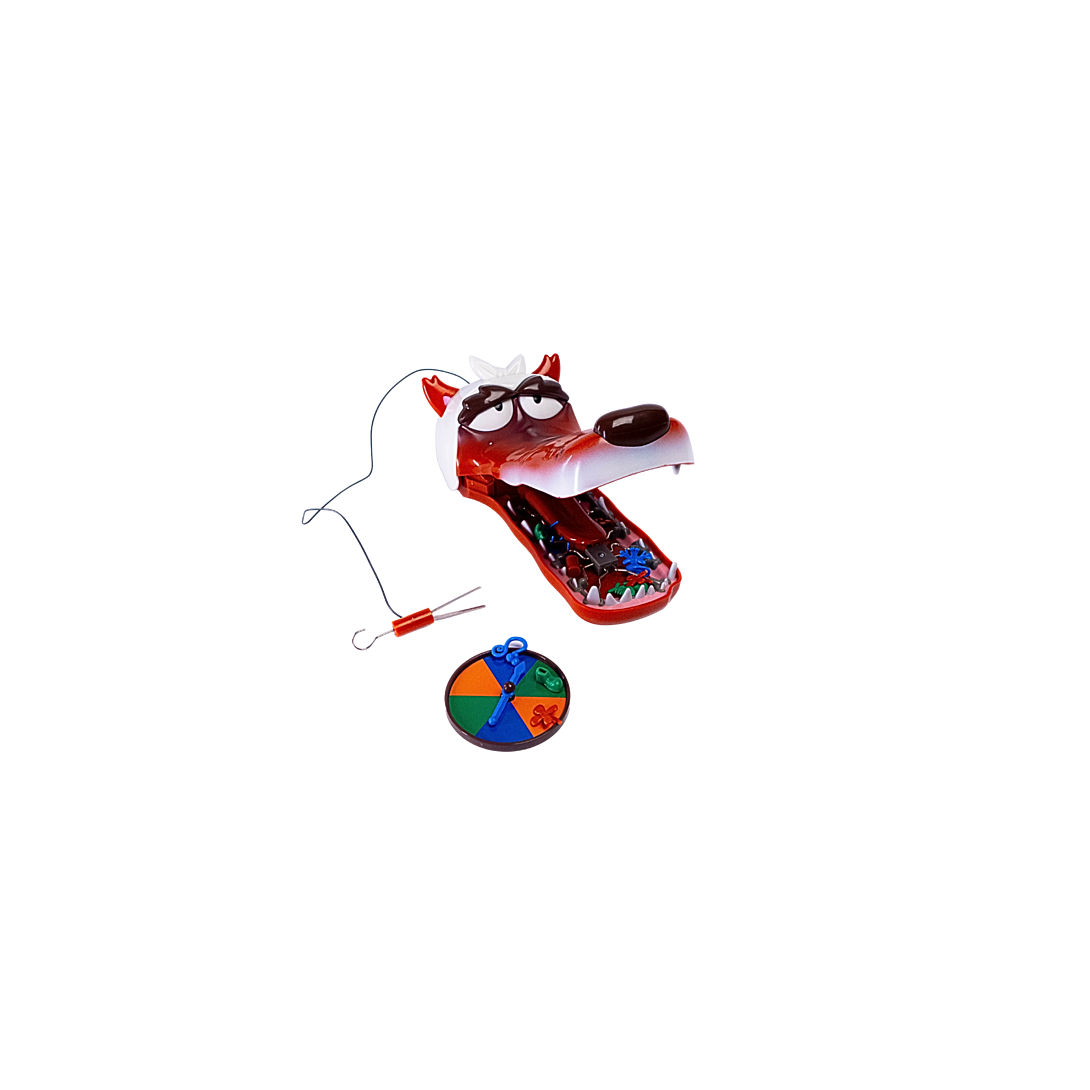 Ce loup a mangé vraiment n’importe quoi ! À l’aide de la pince, les enfants peuvent jouer au dentiste et retirer les l’objets coincés dans la gueule de Malo ! Mais attention de ne pas te faire mordre !