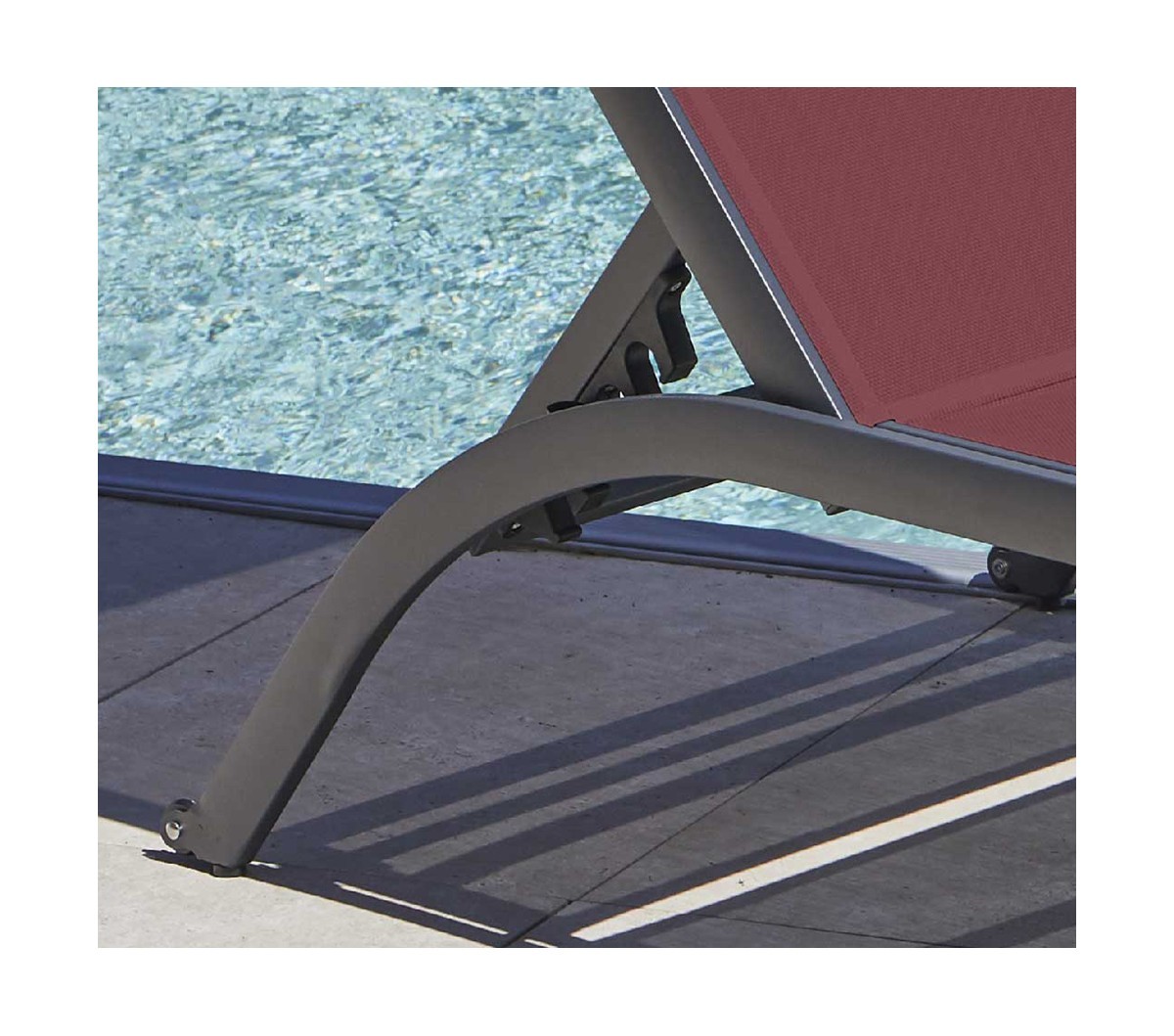 Ce bain-de-soleil est en aluminium traité antirouille avec un habillage en polyester enduit PVC.