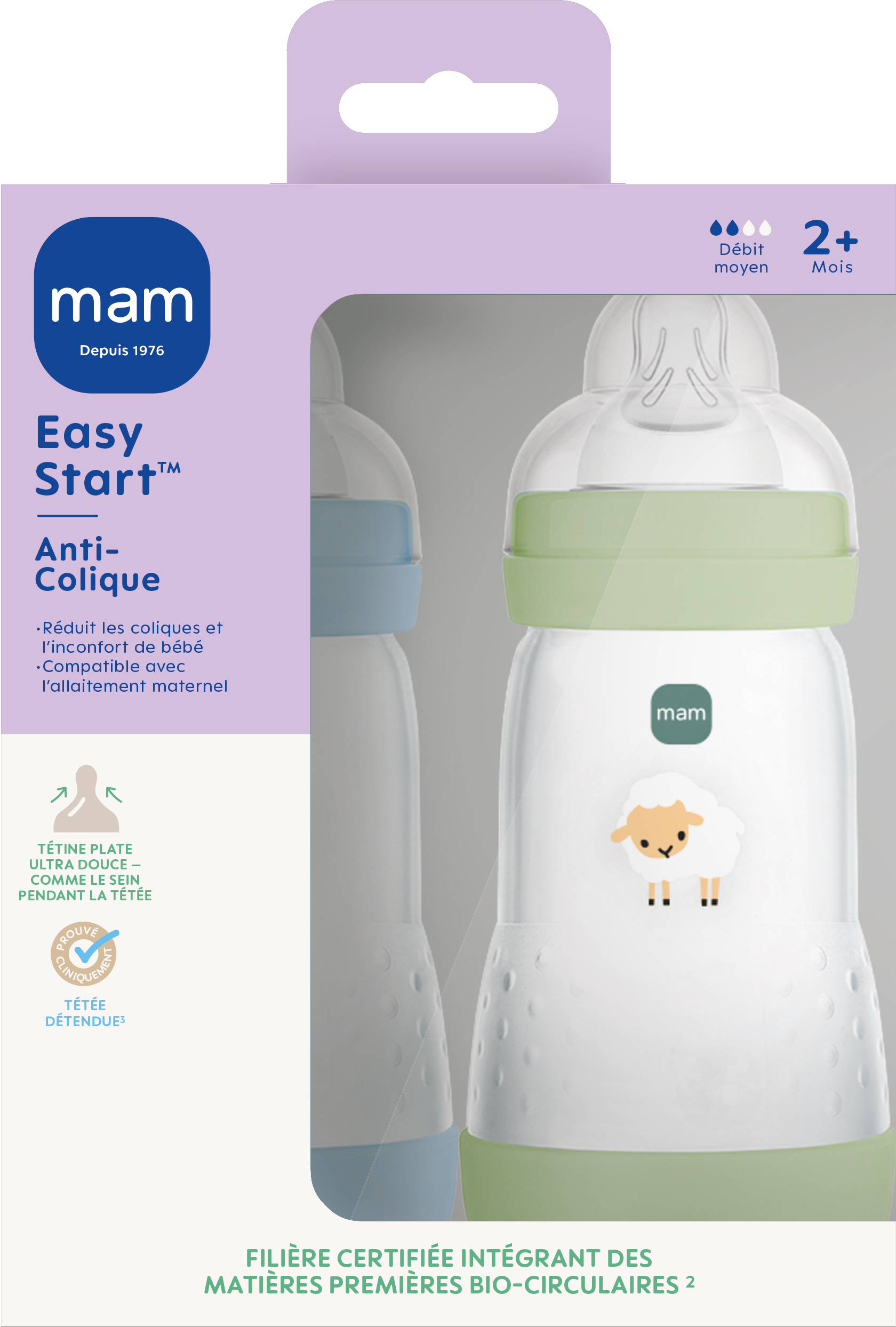 | Libellé | Mam Biberon Easy Start / Anti-Colique - 260ml - Océan + Sable - Tétine Débit 2 - X2 |