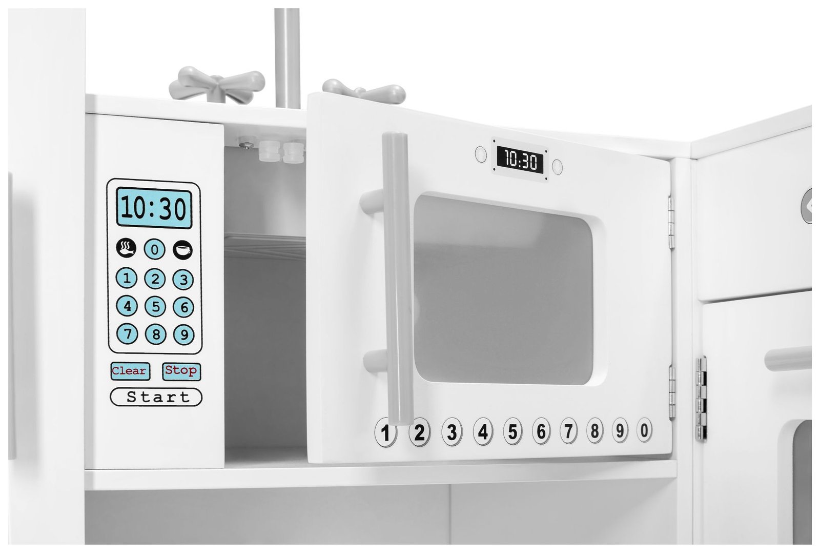 Libellé Mamabrum Cuisine Enfants En Bois XXXL Angle - Disposition L - Grand Frigo Plaque de Cuisson Lave Linge Micro-ondes Accessoires Certifiée CE - Blanche