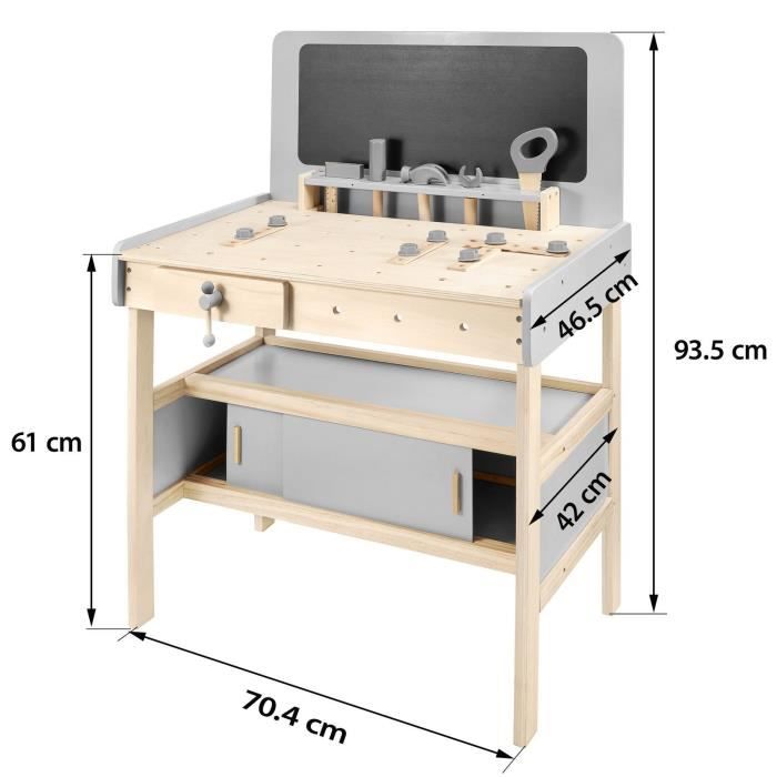 | Libellé | Mamabrum Etabli Atelier de Bricolage XXL 93 x 70 x 46 cm en Bois pour Enfant +50 Pièces pour Visser, Dévisser & Réparer - Ceinture à Outils & Tableau |