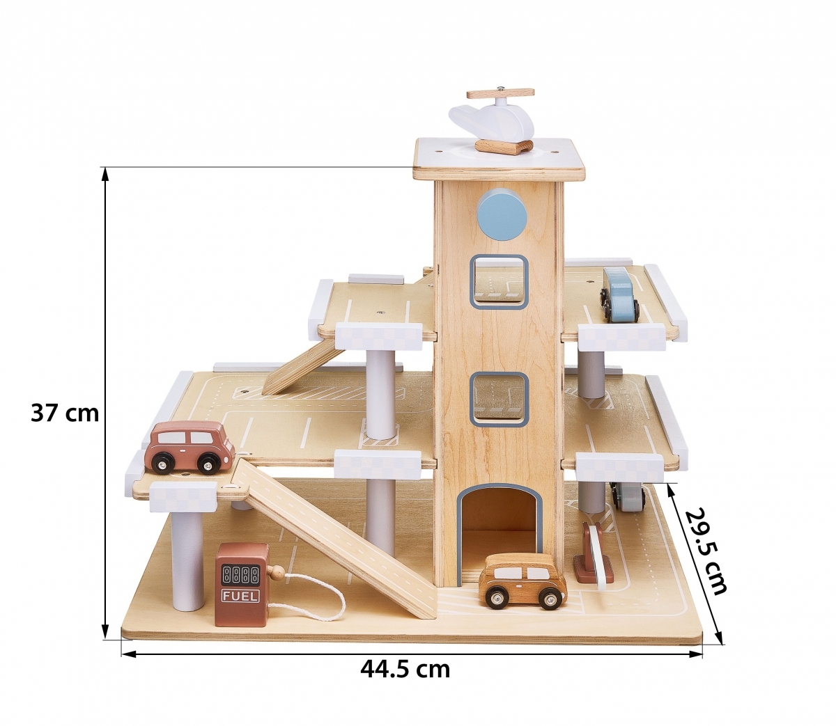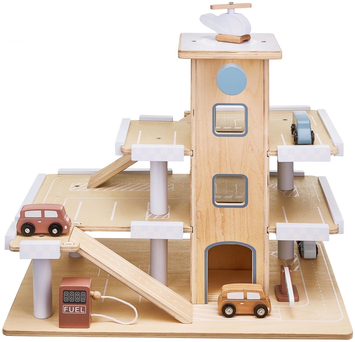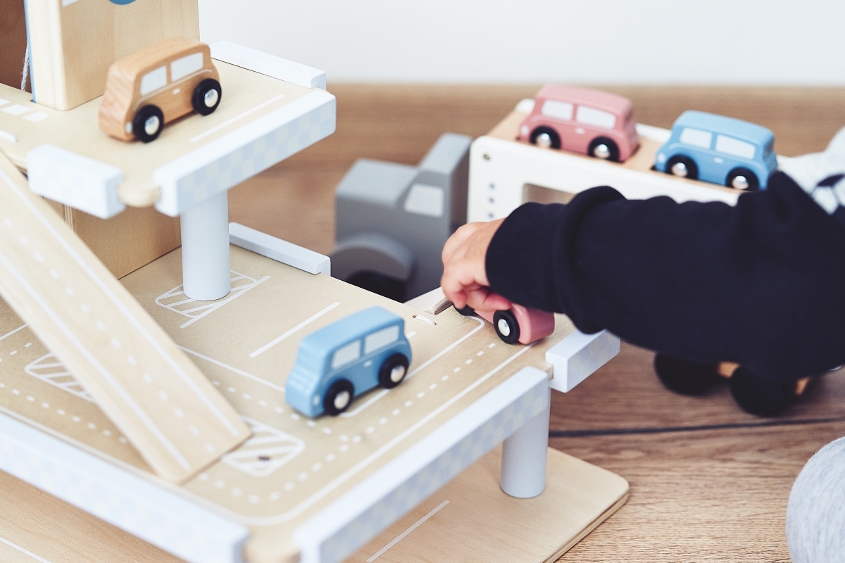 Parking en bois sur trois niveaux, il éveillera l'imagination et stimulera la créativité des petits. Il Permet de développer la motricité et la coordination œil-main chez l’enfant.