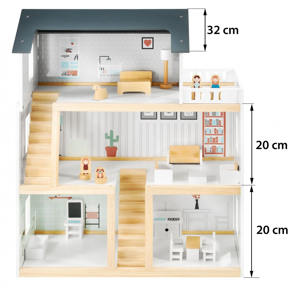 Grande maison de poupées de taille 70 x 30 x 60 cm pour enfants à partir de 3 ans. Maison de rêve pour les poupées exigeantes et aussi le rêve de chaque fille de pouvoir jouer dans une si belle maison avec ses poupées!