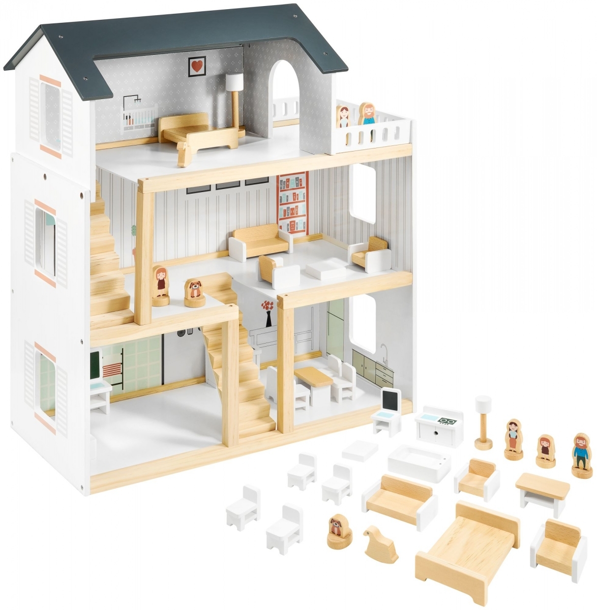 | Libellé | Mamabrum Maison de Poupées en Bois avec Grande Terrasse 4 Figurines, 3 Etages, 2 Chambres, Cuisine, Salon & 19 Pièces Mobiles (CE) |