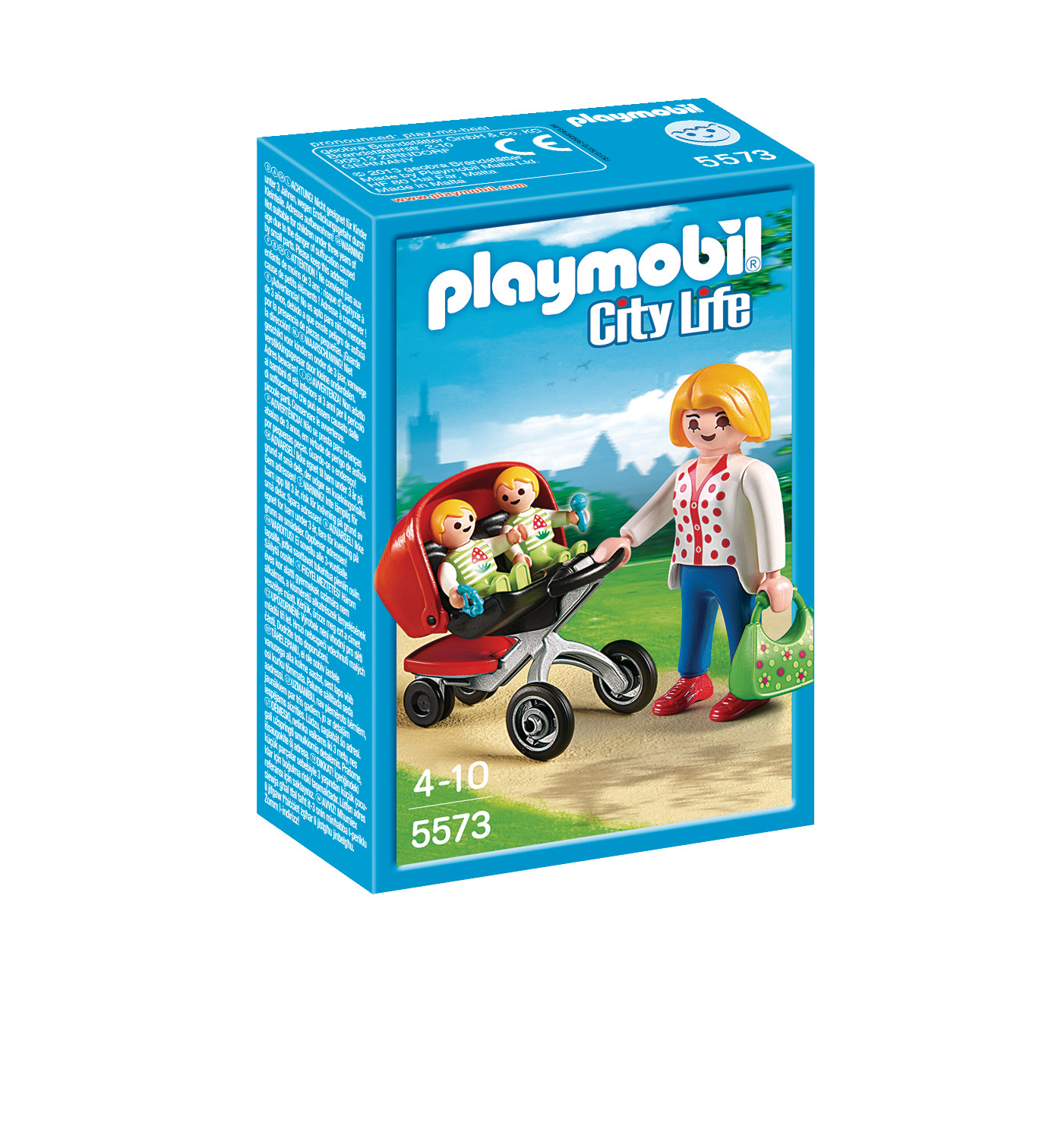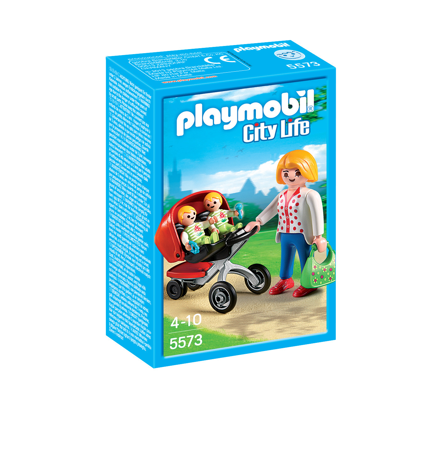 Contient 3 personnages, 1 landau et des accessoires (sac à main, hochets).