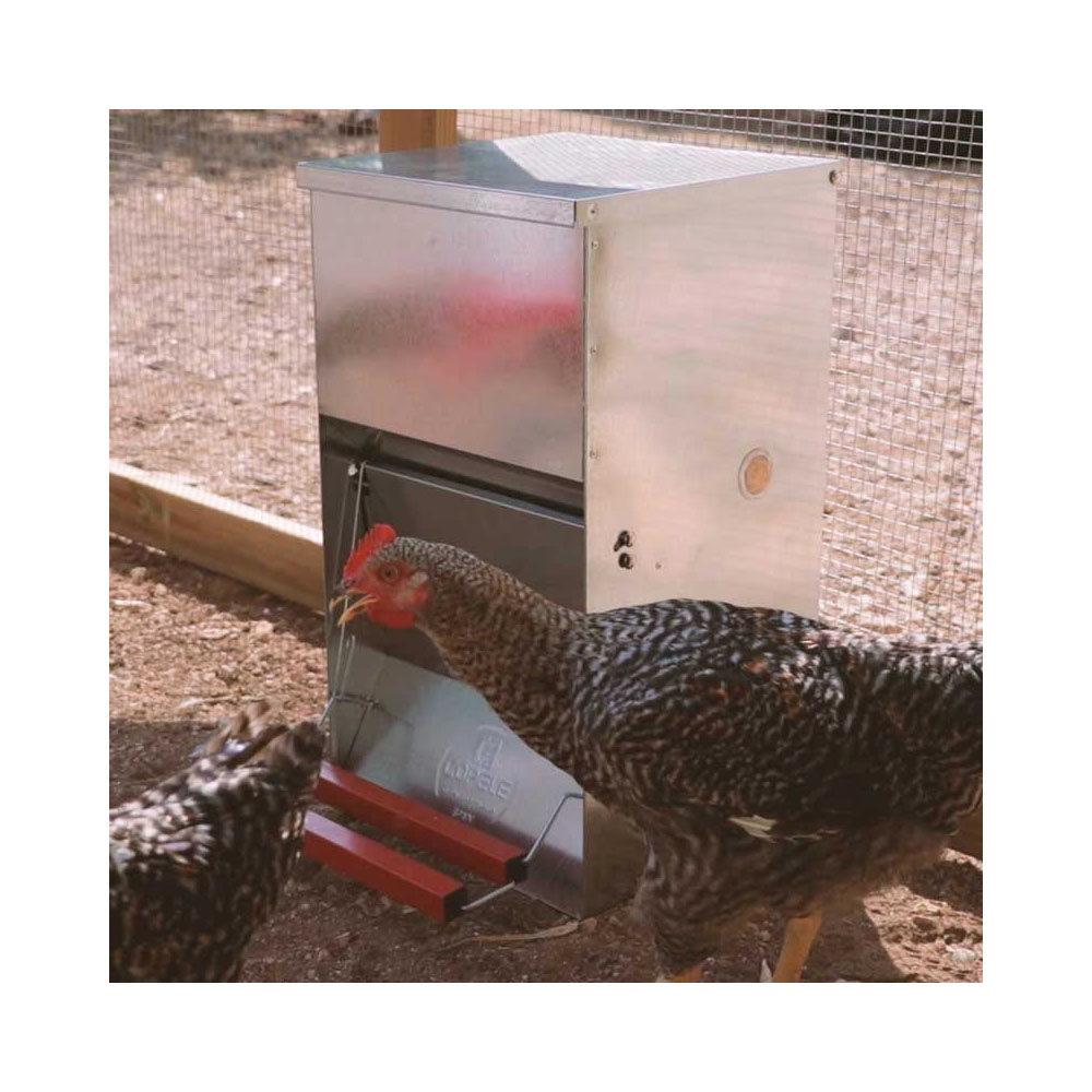 Mangeoire anti-nuisibles Safeed en acier galvanisé, d'une capacité de 12 kg pour nourrir jusqu'à 6 poules. Cette mangeoire est conçue pour empêcher les rongeurs, les oiseaux ou les limaces d'accéder à la nourriture, ou qu'elle se déverse sur le sol.