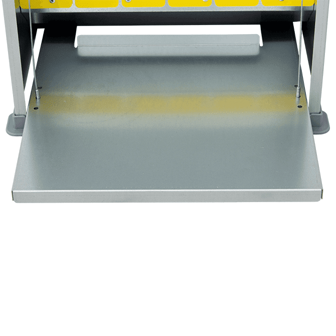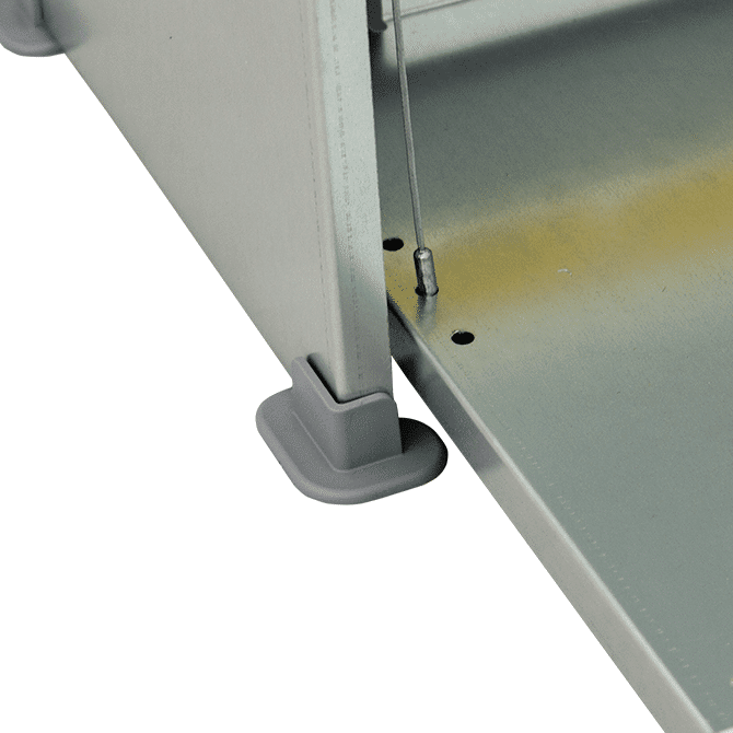 - Pieds en plastique pour éviter le contact direct de la tôle avec le sol, et donc les oxydations inévitables qui compromettraient la durée de vie de la mangeoire.