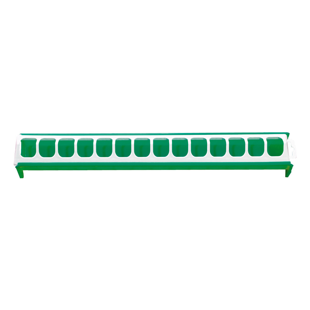 En plastique. Pratique et facile à nettoyer. Idéale pour 15 poussins