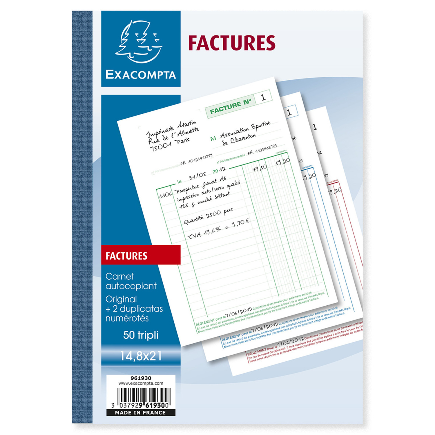 | Libellé | Manifold Triplicata Factures 148X210 50 Feuilles Papier Autocopiant 56G Sous Film Avec Encart Exacompta |
