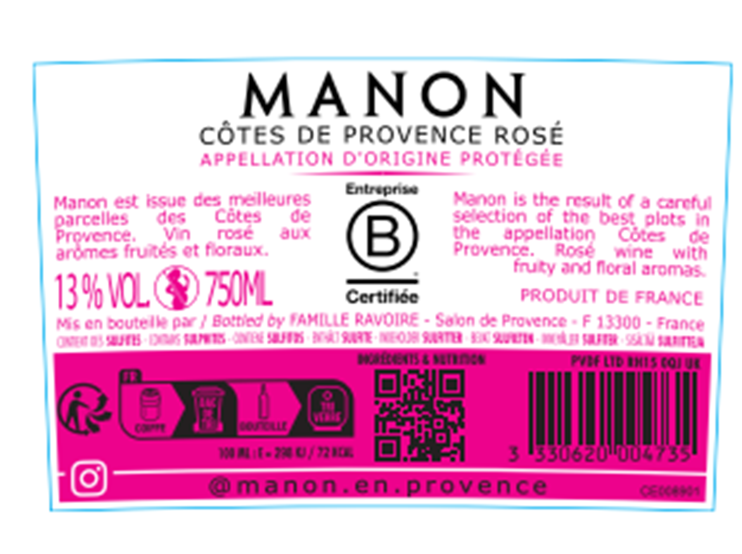 | Libellé | Manon, 2024 - Côtes de Provence AOP - Rosé - 75 cl |