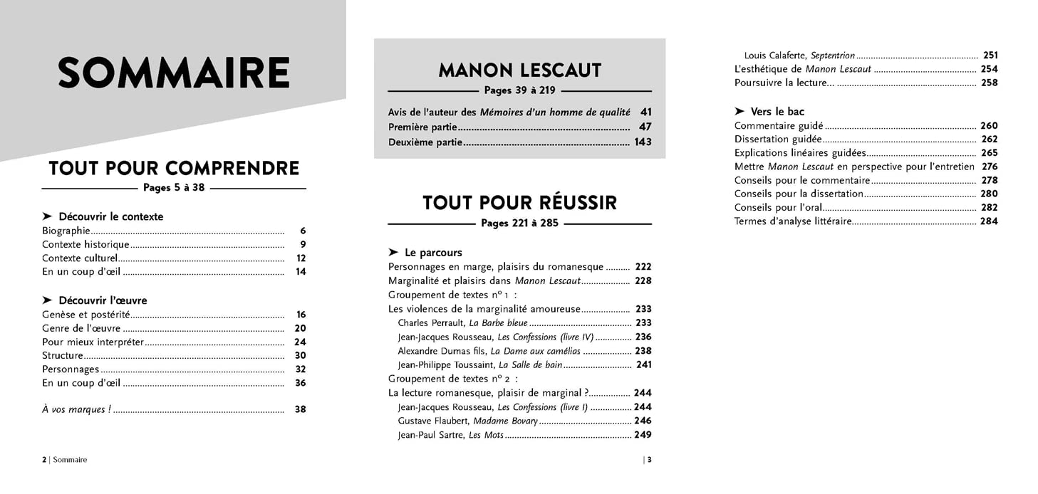 Des Grieux et Manon sont jeunes et beaux, et ils s'aiment. Mais il vient d'une famille noble, alors qu'elle est une fille du peuple. Surtout, elle se montre vaniteuse et prête à toutes les infidélités pour assouvir son goût du luxe... Dans ce roman de l'amour fou, le plaisir de lecture naît du spectacle de passions en marge des conventions sociales et morales. TOUT POUR COMPRENDRE - Notes lexicales - Biographie et contexte - Genèse et genre de l'oeuvre - Chronologie et carte mentale PERSONNAGES EN MARGE, PLAISIRS DU ROMANESQUE - Analyse du parcours - Groupements de textes - Histoire des arts VERS LE BAC - Explications linéaires guidées - Sujets de dissertation et de commentaire guidés - Méthodologie CAHIER ICONOGRAPHIQUE.
