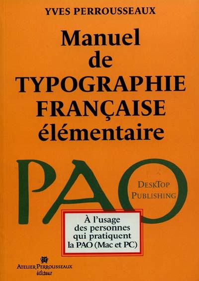 A l'usage des personnes qui pratiquent la PAO sans connaissances en typographie. Cet ouvrage se compose de trois parties : un bref historique des différentes étapes de notre écriture ; les règles élémentaires de typographie ; Des informations pratiques de PAO sur PC et Macintosh.