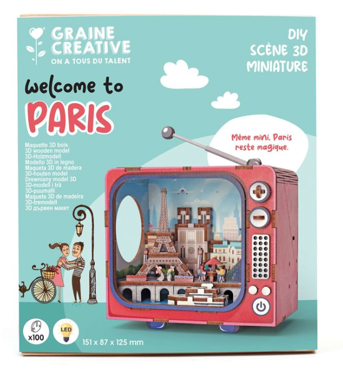 Plongez dans lambiance romantique de la Ville Lumière avec cette mini TV en bois Paris, à monter soi-même. Une décoration unique qui mêle créativité, nostalgie et voyage miniature. Plus quun simple objet décoratif, cette mini TV est une fenêtre sur Paris : la Tour Eiffel et autres monuments, le café parisien une scène miniature élégante qui semble tout droit sortie dun vieux poste télé vintage.