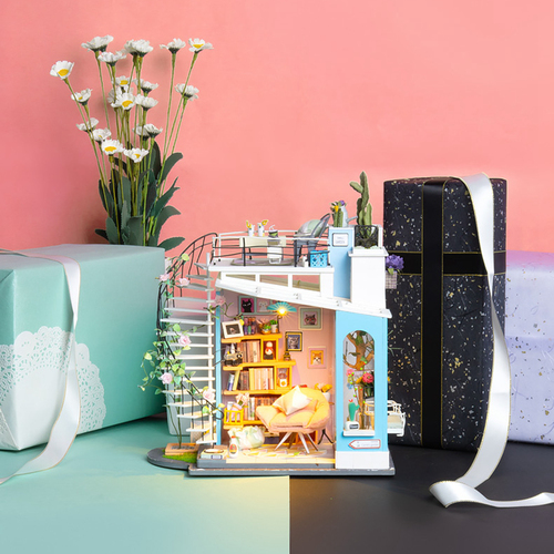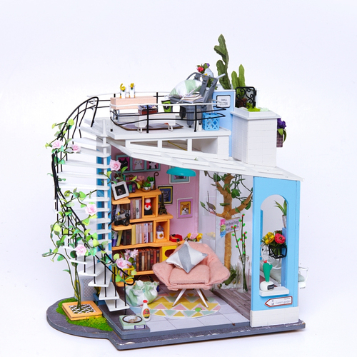 Maquette lumineuse Le Loft de Dora - Kit de maison de poupée miniature à construire soi-même en apparteme