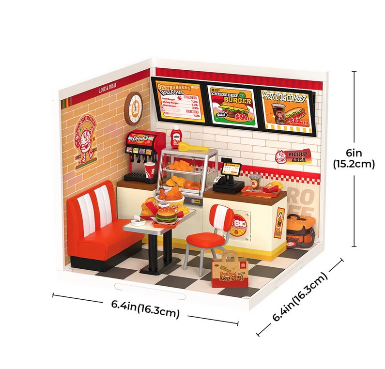 Savourez le charme de ce restaurant de hamburgers miniature car il capture l'essence de votre restaurant de hamburgers préféré. Construisez et exposez ce projet de bricolage.