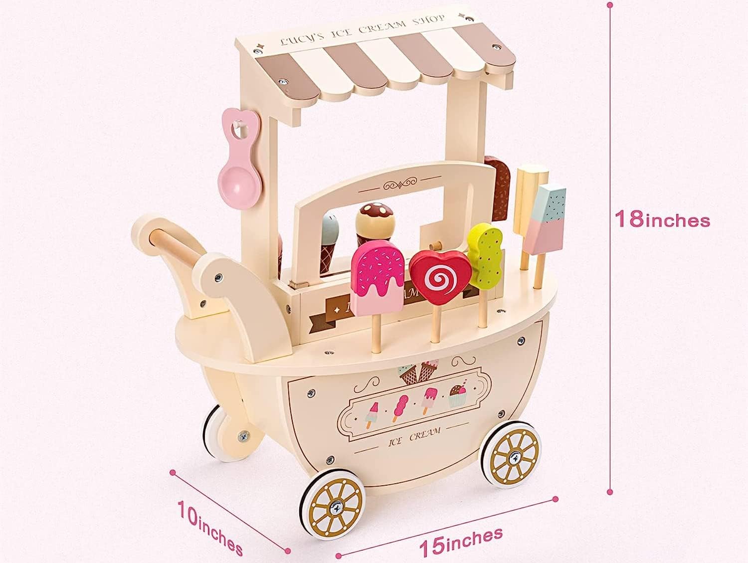 Marchande Enfant, Marchande Glace Bois - Marchande Glace sur Roues avec poignée & Accessoires, Chariot Jo