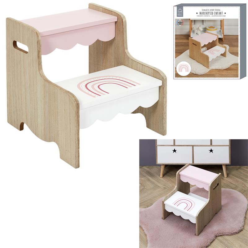 Libellé Marchepied enfant arc en ciel rose et blanc