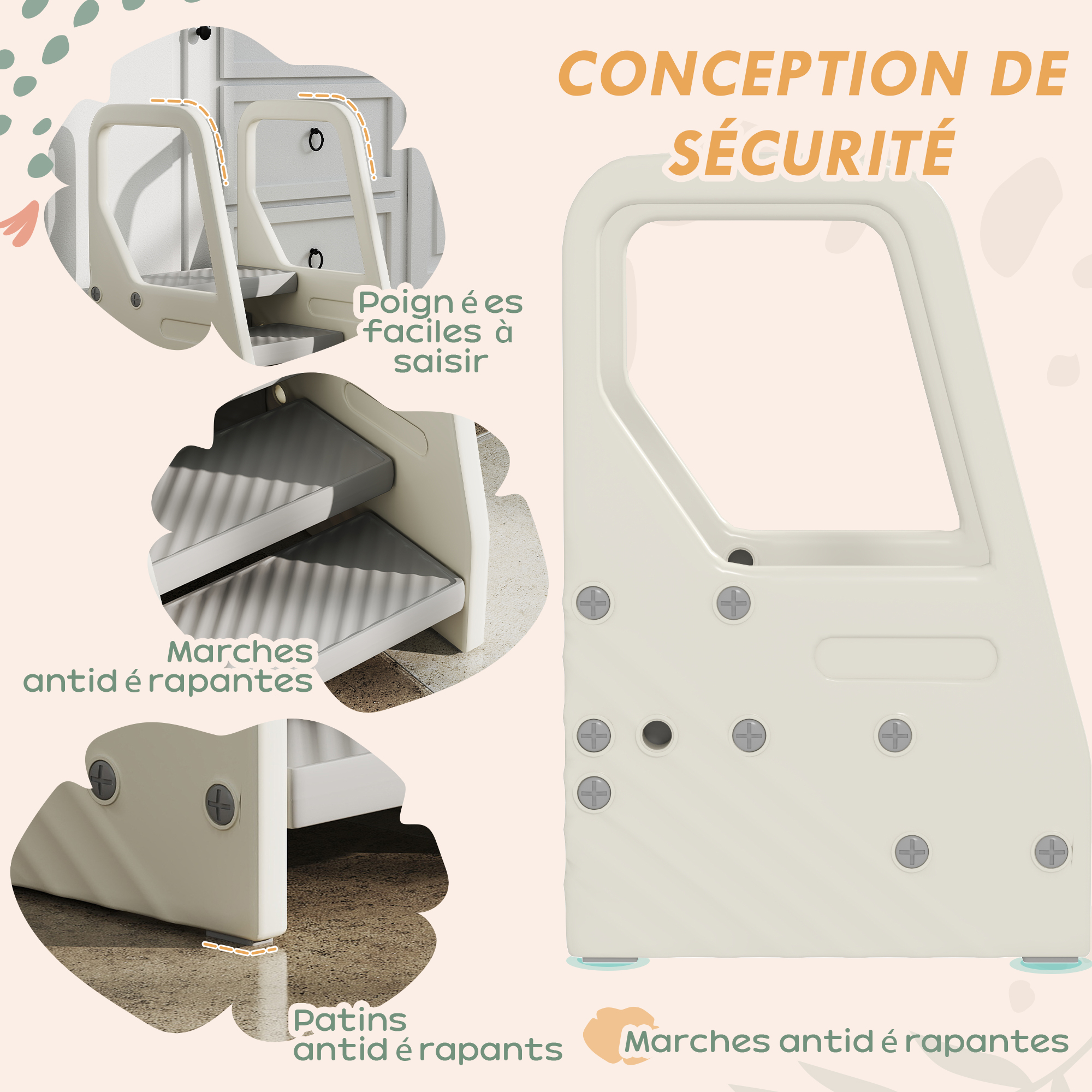 - La structure trapézoïdale du escabeau pour enfants garantit la stabilité lors de l'utilisation