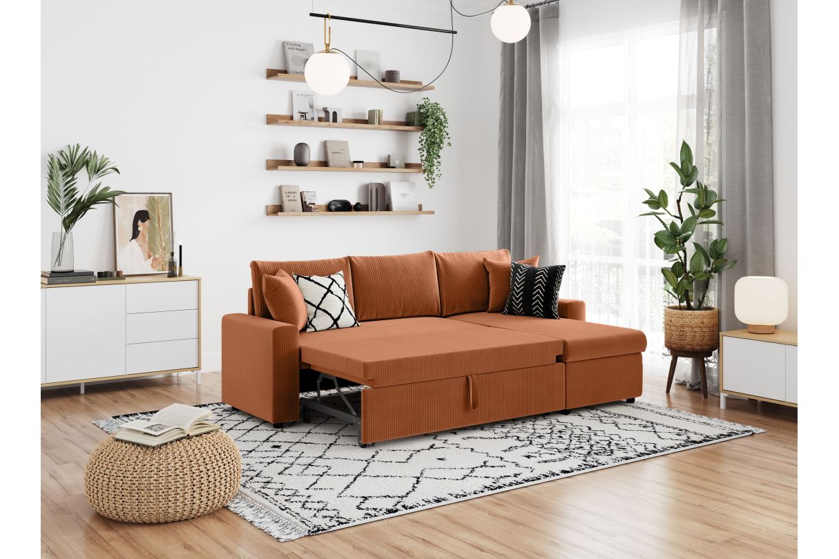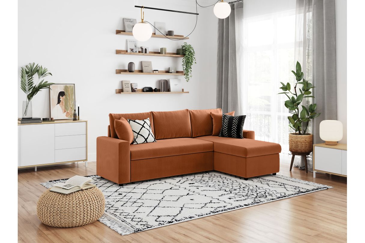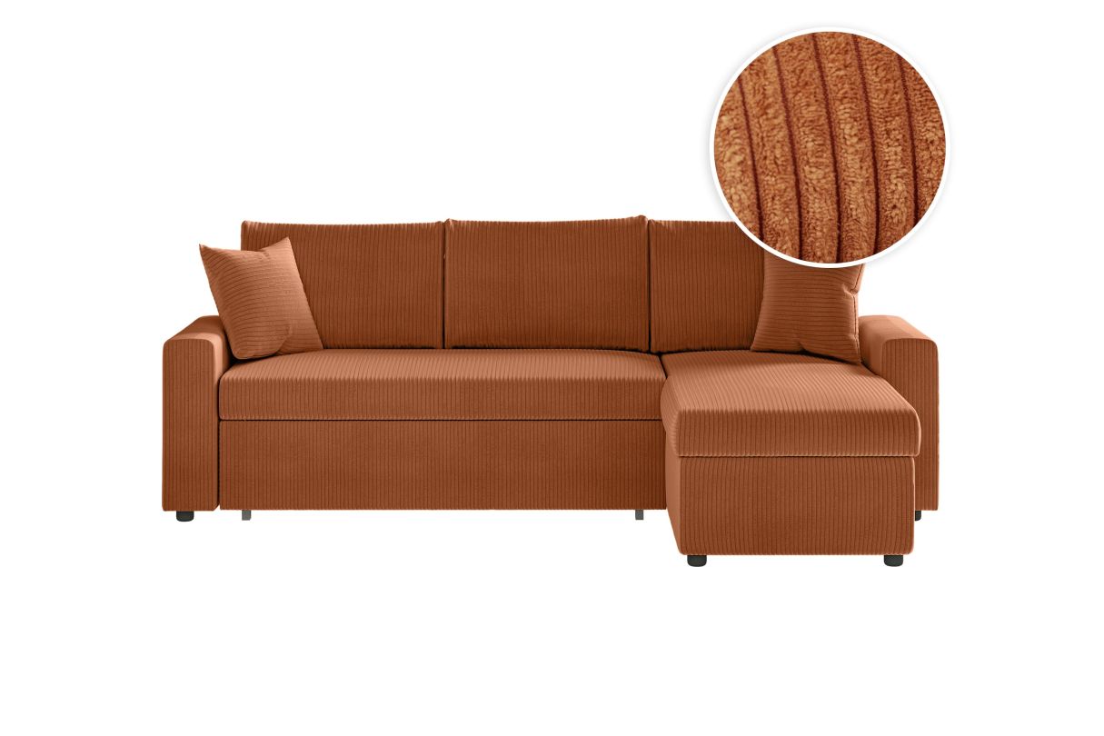 | Libellé | MARIA - Canapé d'angle réversible, convertible en velours côtelé avec coffre - Terracotta |