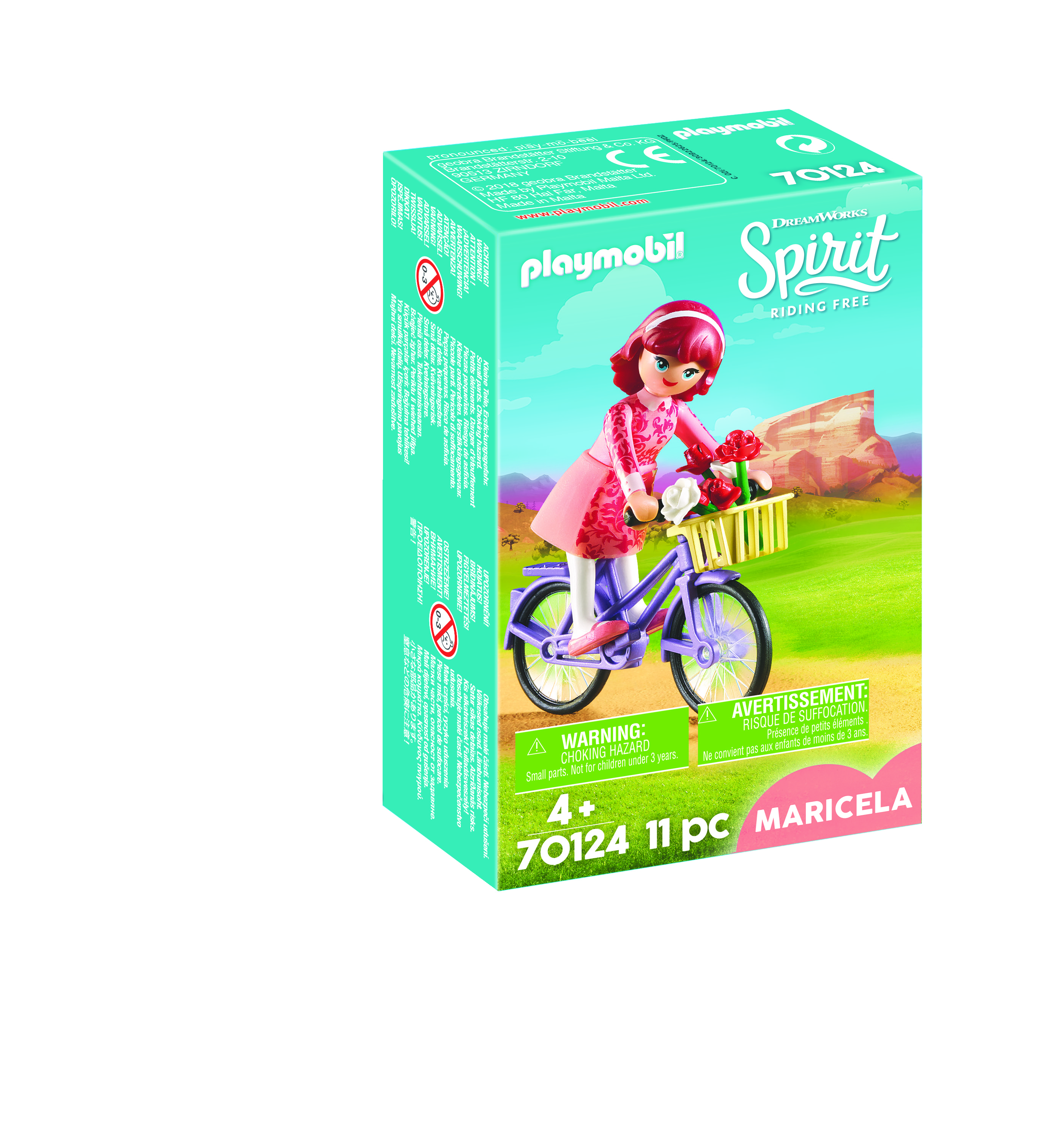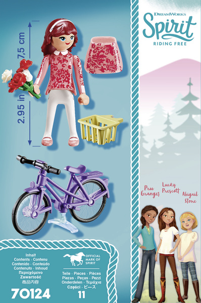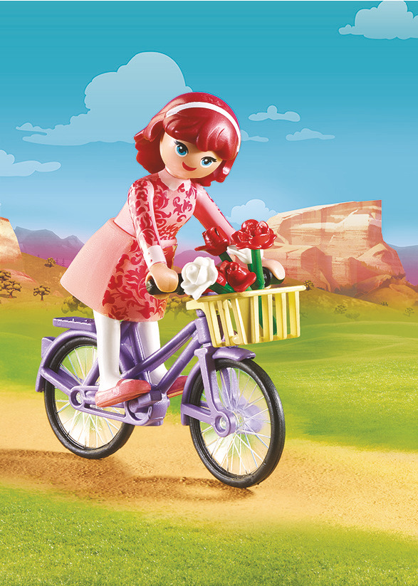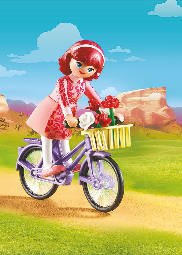 La boîte contient Contient 1 personnage, 1 vélo avec panier et 1 bouquet de fleurs