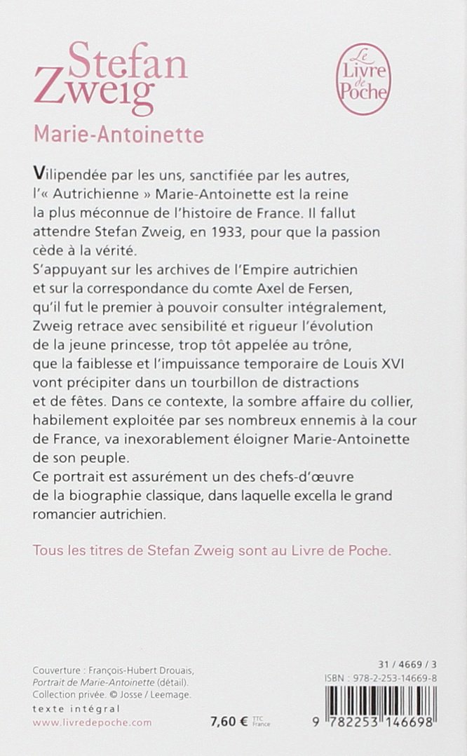 Vilipendée par les uns, sanctifiée par les autres, l'« Autrichienne » Marie-Antoinette est la reine la plus méconnue de l'histoire de France. Il fallut attendre Stefan Zweig, en 1933, pour que la passion cède à la vérité.