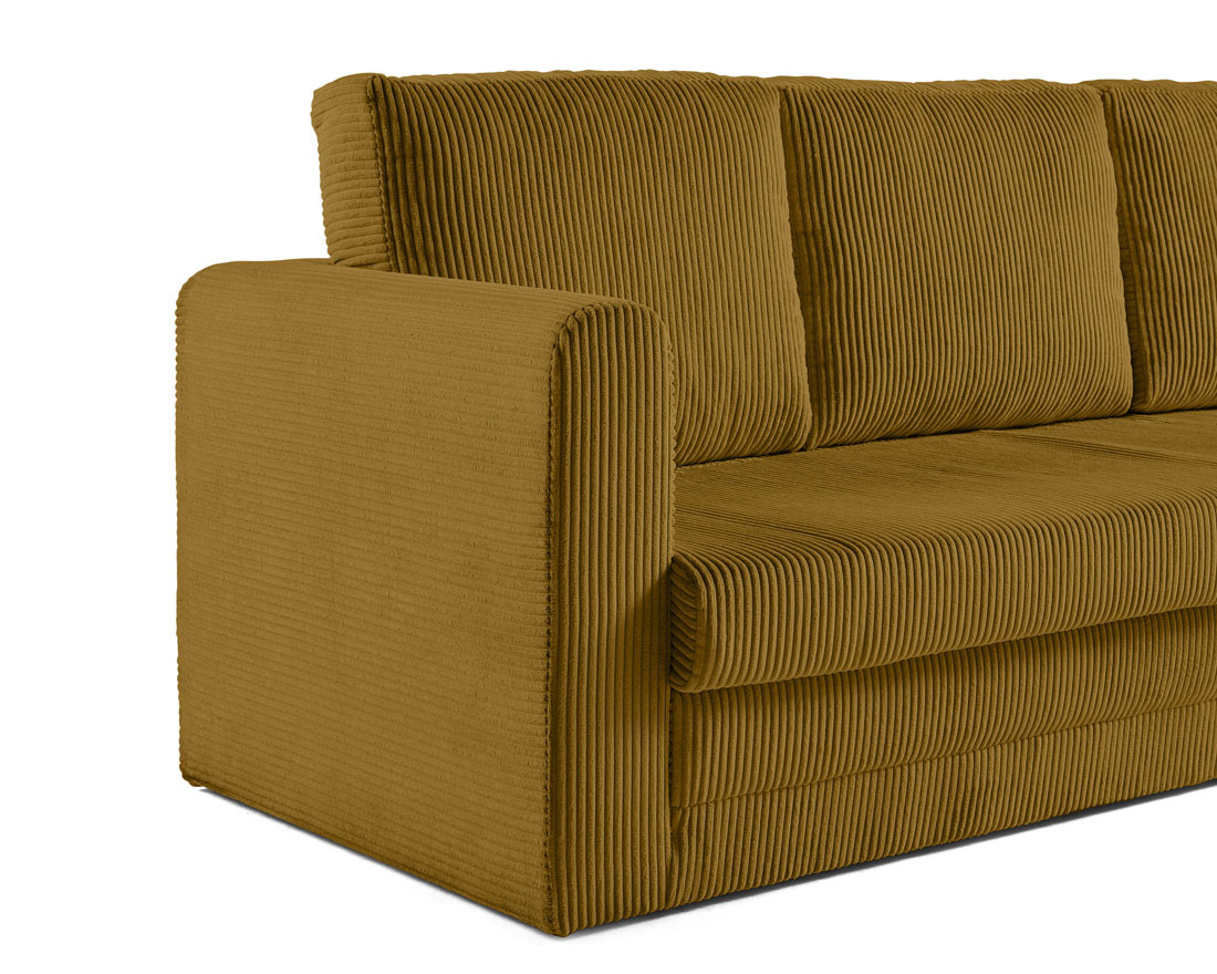 | Plus produit | [Canapé Convertible] Marilia - canapé 3 places - convertible déplimousse - en velours côtelé combine design moderne et fonctionnalité lit intégré pour vos invités. [Couchage Quotidien] Mécanisme fluide et matelas confortable pour un usage régulier en lit 2 places. [Rangement Pratique] Coffre intégré pour stocker couette, coussins ou linge de lit facilement. [Assise Confortable] Rembourrage moelleux avec soutien ergonomique pour détente optimale. [Montage Facile] Livré en modules avec notice claire, montage rapide sans outil spécialisé. |
