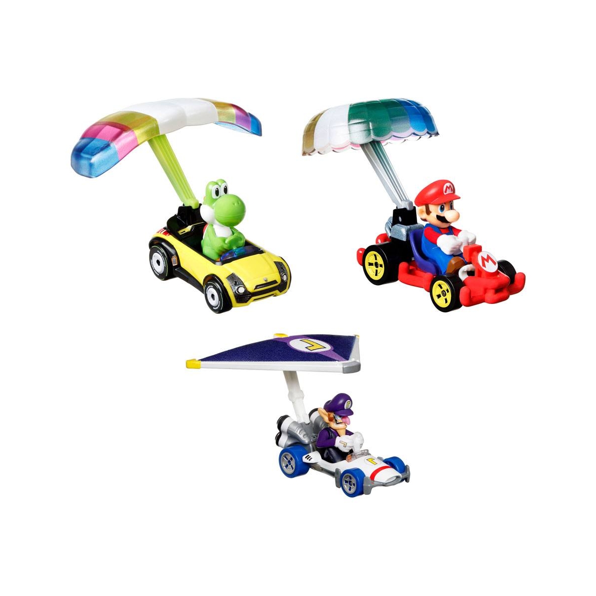 Mario Kart Hot Wheels - Pack 3 véhicules métal 1/64 Yoshi, Waluigi, Mario