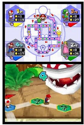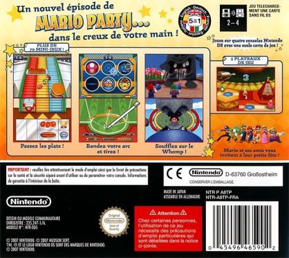 Grâce à Mario Party DS, vos amis et vous pouvez organiser de véritables festivals de mini-jeux où vous voulez et quand vous voulez. Jusqu'à quatre joueurs peuvent s'affronter pour devenir la vedette de Mario Party en n'utilisant qu'une carte de jeu. Les cinq plateaux regorgent de pièges et d'amusement. Arpentez la jungle sauvage de Donkey Kong, la serre de Petey Piranha, le salon de musique de Princess Peach, le laboratoire secret de Magikoopa ou le flipper de Bowser.