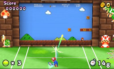 Le tennis se joue en solo ou jusqu'à 4 dans le Royaume Champignon. Enchaînez services, volées et smashs pour mettre la pâtée à vos proches en réseau local ou en ligne grâce à votre console connectée à Internet. Choisissez les commandes qui correspondent le mieux à votre style de jeu : avec les boutons, avec le gyroscope ou sur l'écran tactile ! Choisissez votre personnage : Mario, Peach ou même votre Mii. Fan de Mario, à vos raquettes ! Le jeux en quelques points : - Avec 1 seule carte de jeu, tapez la balle avec 4 amis grâce au réseau local sans fil de la Nintendo 3DS ! - Collectionnez de multiples objets pour personnaliser et faire progresser vos Mii ! - Découvrez de nombreux mini-jeux originaux : le tennis s'invite même dans les niveaux du premier Super Mario Bros.