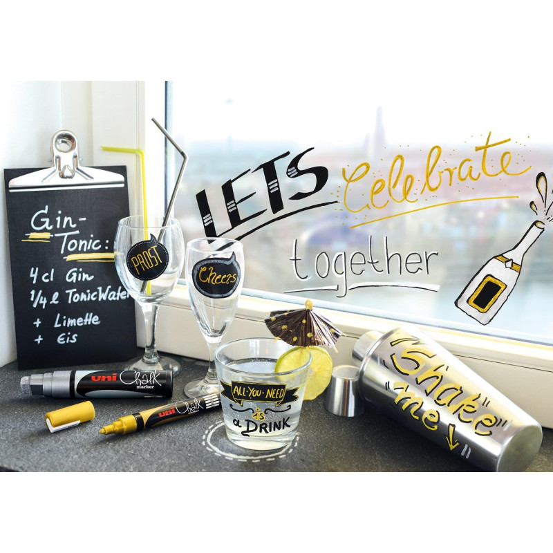 Marqueur craie - Pointe large - Argent - Uni chalk marker - Uni-Ball